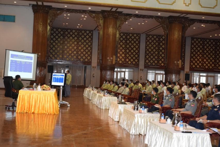 ယင်းနောက် ပြည်ထောင်စုဝန်ကြီးသည် နိုင်ငံတော်စီမံအုပ်ချုပ်ရေးကောင်စီ ပေါ်ပေါက်လာရသည့် အခြေအနေ၊ နိုင်ငံတော်စီမံအုပ်ချုပ်ရေးကောင်စီ၏ ရှေးလုပ်ငန်းစဉ်(၅)ရပ်နှင့် ဦးတည်ချက်(၉)ရပ်ချမှတ် ဆောင်ရွက်နေမှုအခြေအနေ၊ ပြည်ထောင်စုရွေးကောက်ပွဲကော်မရှင်မှ မြို့နယ်အသီးသီးတွင် မဲစာရင်း များအား ဌာနဆိုင်ရာပူးပေါင်းအဖွဲ့အစည်းများဖြင့် ပွင့်လင်းမြင်သာစွာ စစ်ဆေးမှုနှင့် တွေ့ရှိရမှုအခြေ အနေ၊ နိုင်ငံတော် ဆန့်ကျင်ရေးကိုနည်းမျိုးစုံဖြင့် ဆောင်ရွက်နေသည့် အခြေအနေ၊ အစွန်းရောက်အကြမ်းဖက်အဖွဲ့အစည်းများ၏ လုပ်ရပ်မျိုးဖြင့် ပြည်သူလူထုမရွေး၊ နေရာဒေသမရွေးတွင် အဖျက်အမှောက်လုပ်ငန်းများကို ဆောင်ရွက်နေမှုများနှင့် ထိုသို့ဆောင်ရွက်နေမှု များကို ရပ်ကွက်/ ကျေးရွာ အုပ်ချုပ်ရေးမှူးများအနေဖြင့် လုံခြုံရေးအဖွဲ့အစည်းများနှင့်အတူ ပူးပေါင်းဆောင်ရွက်ကြရမည် ဖြစ်ကြောင်း၊ ဝန်ကြီးဌာနမှ သတ်မှတ်ပေးထားသည့် ရပ်ကွက်/ကျေးရွာ အုပ်ချုပ်ရေးမှူးလုပ်ငန်းတာဝန် (၃၂)ချက်ကို ကျေညက်စွာ သိရှိကြပြီး လိုက်နာဆောင်ရွက်ကြရန် လိုအပ်ပါကြောင်း၊ ရပ်ကွက်/ကျေးရွာများတွင် အုပ်ချုပ်ရေးမှူးများ၏ အခန်းကဏ္ဍသည် လူတစ်ဦး မွေးဖွားစဉ်မှ သေဆုံးသွားချိန်အထိ လိုအပ်ချက်နှင့် လုပ်ငန်းရပ်များကိုဆောင်ရွက် ပေးနေရသူအဖြစ် မြင့်မားစွာ ရပ်တည်နေကြသည်ကို ပြည်သူလူထု အနေဖြင့် သိမြင်နားလည်ကြရန် လိုအပ်ပါကြောင်း၊ လက်ရှိအချိန်ကာလအရ မိမိတို့၏တစ်ဦးချင်း လုံခြုံရေး၊ မိမိတာဝန်ယူထားရသည့် ရပ်ကွက်/ ကျေးရွာများ၏လုံခြုံရေးကို တာဝန်ရှိသူ အသီးသီးအနေဖြင့် (ရဲဘော်ရဲဘက်စိတ်)အပြည့်အဝဖြင့် ဆောင်ရွက်ကြရန် လိုအပ်ကြောင်းမှာကြားသည်။