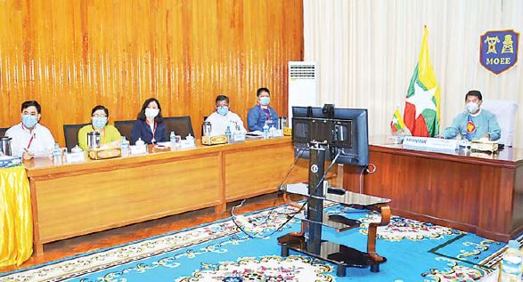 (၃၉) ကြိမ်မြောက် အာဆီယံစွမ်းအင်ဆိုင်ရာ အဆင့်မြင့်အရာရှိကြီးများအစည်းအဝေးနှင့် ဆက်စပ် အစည်းအဝေးများ (39th Senior Officials Meeting en Energy (SOME) and Associated Meetings) ကို ယနေ့တွင် ဘရူနိုင်းနိုင်ငံမှ အလှည့်ကျဥက္ကဋ္ဌ အဖြစ် ဗီဒီယိုကွန်ဖရင့်စနစ်ဖြင့် ကြီးမှူးကျင်းပလျက် ရှိရာ အဆိုပါအစည်းအဝေးသို့ မြန်မာနိုင်ငံ၏ အာဆီယံစွမ်းအင်ဆိုင်ရာ အဆင့်မြင့်အရာရှိကြီး (Senior Official on Energy (SOE) Leader) (gdy လျှပ်စစ်နှင့် စွမ်းအင်ဝန်ကြီးဌာန အမြဲတမ်း အတွင်းဝန် ဦးသန်းဇော်နှင့်အတူ စွမ်းအင်ဆိုင်ရာ ကဏ္ဍခွဲအလိုက် တာဝန်ရှိသူများ တက်ရောက်သည်။
