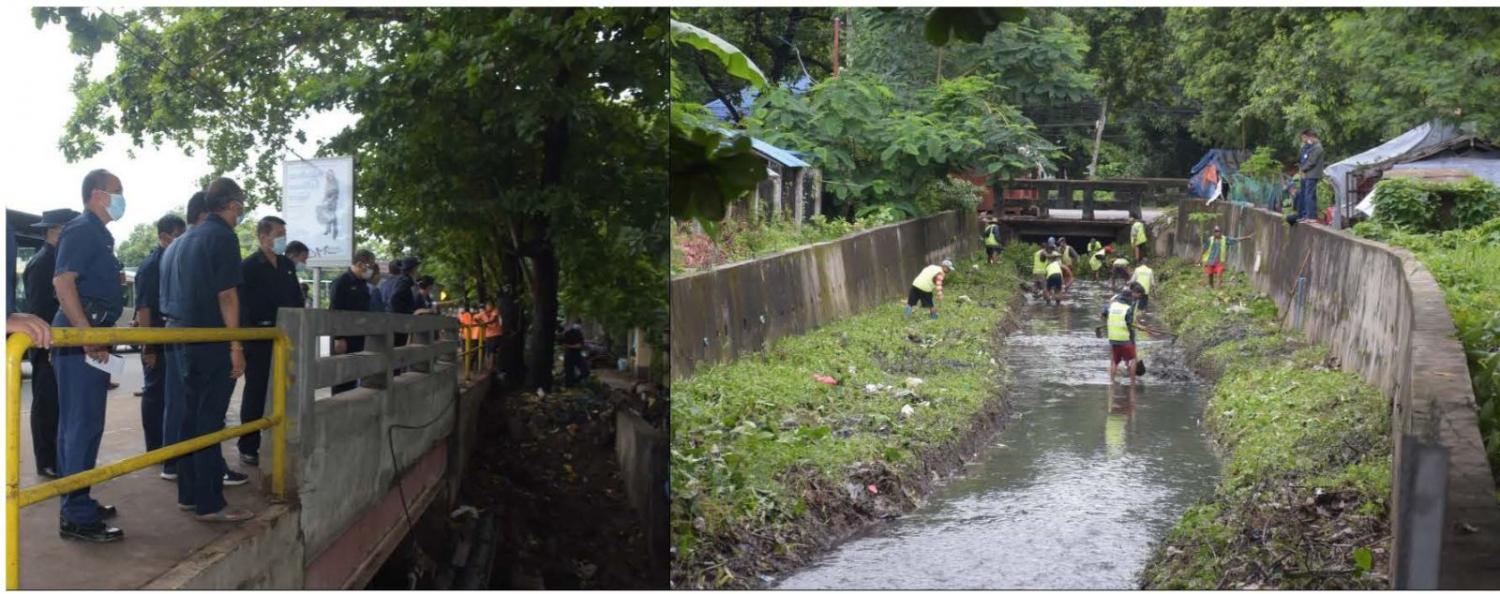 ယင်းနောက် မြို့တော်ဝန်နှင့် အဖွဲ့သည် အင်းစိန်မြို့နယ် အရှေ့ကြို့ကုန်းရပ်ကွက် မဟာသုခိတာလမ်းနှင့် အင်းစိန် လမ်းထောင့်ရှိ ရိုးကြီးချောင်းအတွင်း နုံးများ၊ အမှိုက်နှင့် ဒိုက်များ ဆယ်ယူနေမှုအား ကြည့်ရှုစစ်ဆေးပြီး လိုအပ် သည်များမှာကြားခဲ့ကြောင်း သိရသည်။