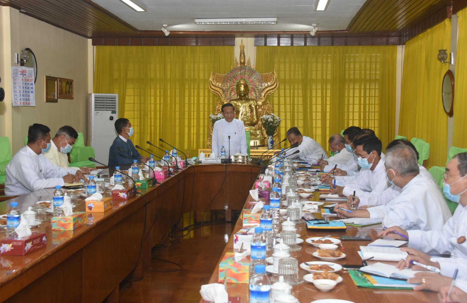 ယင်းနောက် ပြည်ထောင်စုဝန်ကြီးနှင့် တာဝန်ရှိသူများသည် လေးဆူဓာတ်ပုံ ရွှေတိဂုံ စေတီ တော်မြတ်ကြီး ဘဏ္ဍာတော်ထိန်းဂေါပကအဖွဲ့နှင့် ဂေါပကအဖွဲ့ရုံး အစည်းအဝေးခန်းမ၌ အစည်းအဝေးပြုလုပ်ပြီး လေးဆူဓာတ်ပုံရွှေတိဂုံတော်မြတ်ကြီးအား အများပြည်သူ စိတ်ချမ်း မြေ့စွာ လာရောက်ဖူးမြော်ကြည်ညိုနိုင်ရေးနှင့် ကျန်းမာရေးနှင့်အားကစားဝန်ကြီးဌာန၏ Covid-19 ရောဂါ ထိန်းချုပ်တားဆီးကာကွယ်ရေးဆိုင်ရာ လမ်းညွှန်ချက်များနှင့်အညီ စနစ် တကျ စိတ်ချမ်းမြေ့စွာ ဖူးမြော်ကြည်ညိုနိုင်ရေးဆောင်ရွက်ထားရှိရန်မှာ ကြားခဲ့ကြောင်း သတင်းရရှိသည်၊၊