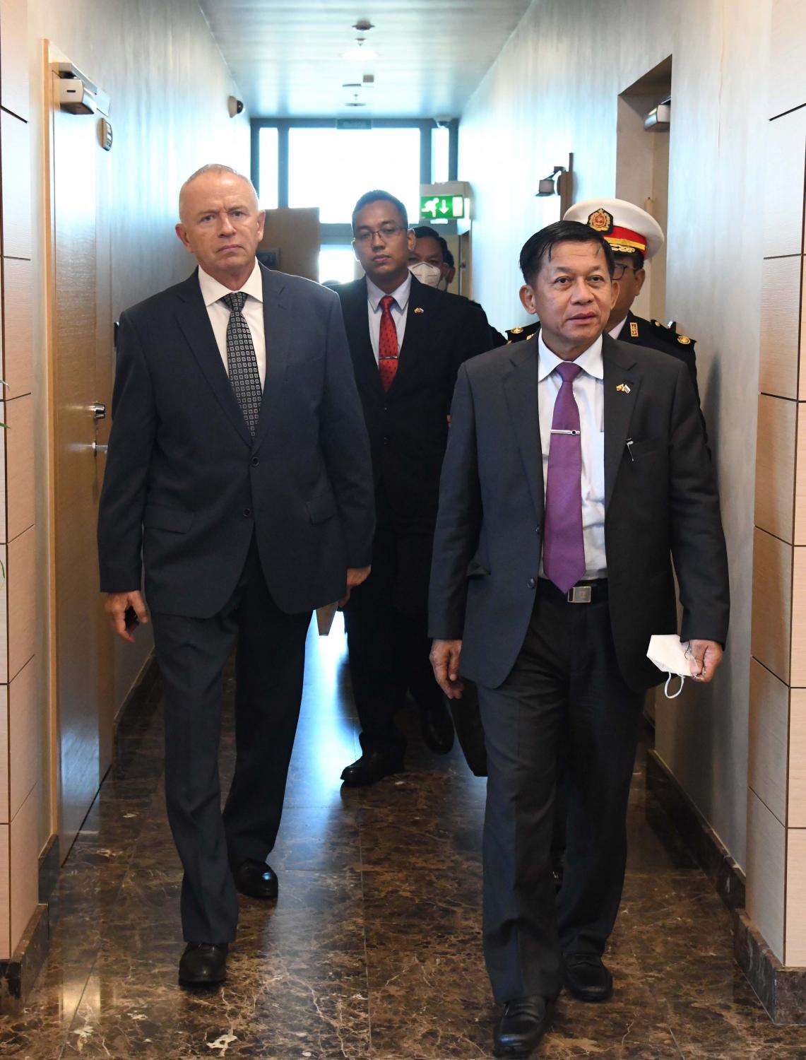 နိုင်ငံတော်စီမံအုပ်ချုပ်ရေး ကောင်စီဥက္ကဋ္ဌ၊ တပ်မတော်ကာကွယ်ရေးဦးစီးချုပ် ဗိုလ်ချုပ်မှူးကြီး မင်းအောင်လှိုင် ဦးဆောင်သည့် ကိုယ်စားလှယ်အဖွဲ့သည် ရုရှား ဖက်ဒရေးရှင်းနိုင်ငံ၊ ကာကွယ်ရေး ဝန်ကြီး Army General Sergei Kuzhugetovich Shoigu ၏ဖိတ်ကြားချက်အရ ရုရှားဖက်ဒရေးရှင်း နိုင်ငံတွင် ကျင်းပပြုလုပ်မည့် (၉)ကြိမ် မြောက်နိုင်ငံတကာလုံခြုံရေးဆိုင်ရာညီလာခံ (Moscow Conference on International Security-2021(MCIS-2021))သို့ တက်ရောက်ရန်အတွက် ဇွန် ၂၀ ရက် နံနက်ပိုင်းတွင် အပြည်ပြည်ဆိုင်ရာမြန်မာလေကြောင်း(MAI)မှ အထူးလေယာဉ်ဖြင့် နေပြည်တော် တပ်မတော်လေဆိပ်မှ ထွက်ခွာခဲ့ကြပြီး ဒေသစံတော်ချိန်ညနေပိုင်းတွင် ရုရှား ဖက်ဒရေးရှင်းနိုင်ငံ၊ မော်စကိုမြို့ Sheremetyevo အပြည်ပြည်ဆိုင်ရာလေဆိပ်သို့ ရောက်ရှိကြသည်။