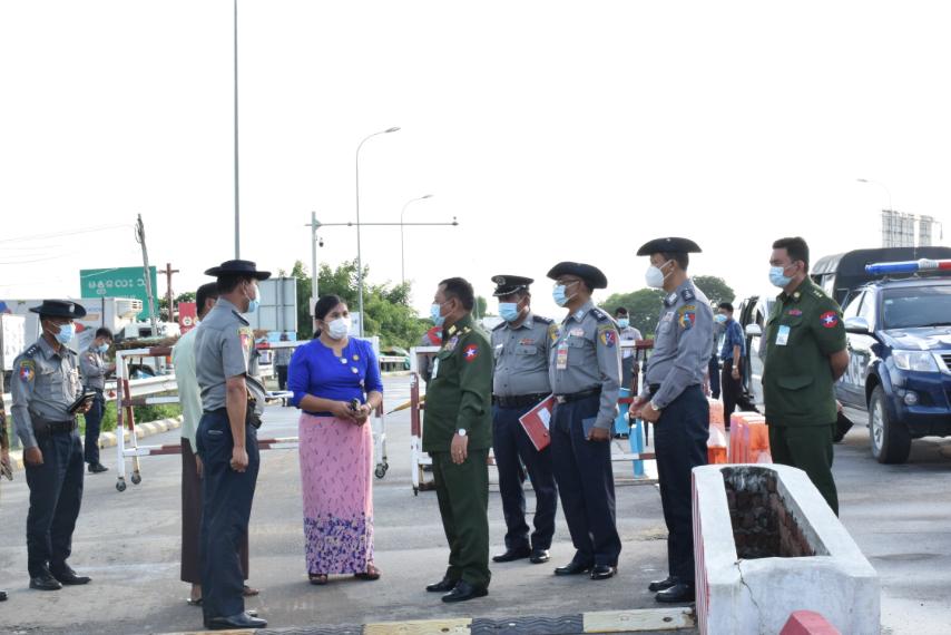 ဆက်လက်၍ ပြည်ထောင်စုဝန်ကြီးသည် နေပြည်တော်အဝင်(စီ)လမ်းဆုံနေရာရှိ ကိုဗစ်-၁၉ ကျန်းမာရေးစစ်ဆေးမှုနှင့် လုံခြုံရေးဆောင်ရွက်နေမှုများကို ကြည့်ရှုပြီး နေပြည်တော် ကောင်စီမှ သတ်မှတ်ညွှန်ကြားထားရှိသော ကိုဗစ်-၁၉ ရောဂါဆိုင်ရာ ညွှန်ကြားချက်များကို အလေး ထားလိုက်နာရေး၊ အခြားသောမြို့နှင့် ဒေသအသီးသီးမှ ဝင်ရောက်လာသော ခရီးသွားပြည်သူ လူထုများကို သက်ဆိုင်ရာဝန်ကြီးဌာနက ချမှတ်အသိပေးထားရှိသည့် ကျန်းမာရေးဆိုင်ရာ ညွှန်ကြားချက်များကို အသိပေးခြင်း၊ ရှင်းလင်းပြောကြားခြင်းများကို ကျန်းမာရေးနှင့် လုံခြုံရေး ဆိုင်ရာအဖွဲ့အစည်းများက ပူးပေါင်းဆောင်ရွက်ပေးရေး၊ လတ်တလောမြန်မာနိုင်ငံအတွင်း ဖြစ်ပွားမှု ပြန်လည်မြင့်မားလာသည့် ကိုဗစ်-၁၉ ရောဂါစစ်ဆေးရမည့် ဝန်ထမ်းများ၊ လုံခြုံရေး အဖွဲ့အစည်းများအနေဖြင့် ပေါ့ဆစွာ သဘောမထားဘဲ မိမိတို့ကိုယ်တိုင် တိတိကျကျ လိုက်နာ ကျင့်သုံးရေးနှင့် လုံခြုံရေးအထူးကြပ်မတ်ဆောင်ရွက်ကြရန် မှာကြားခဲ့ကြောင်း  သိရသည်။
