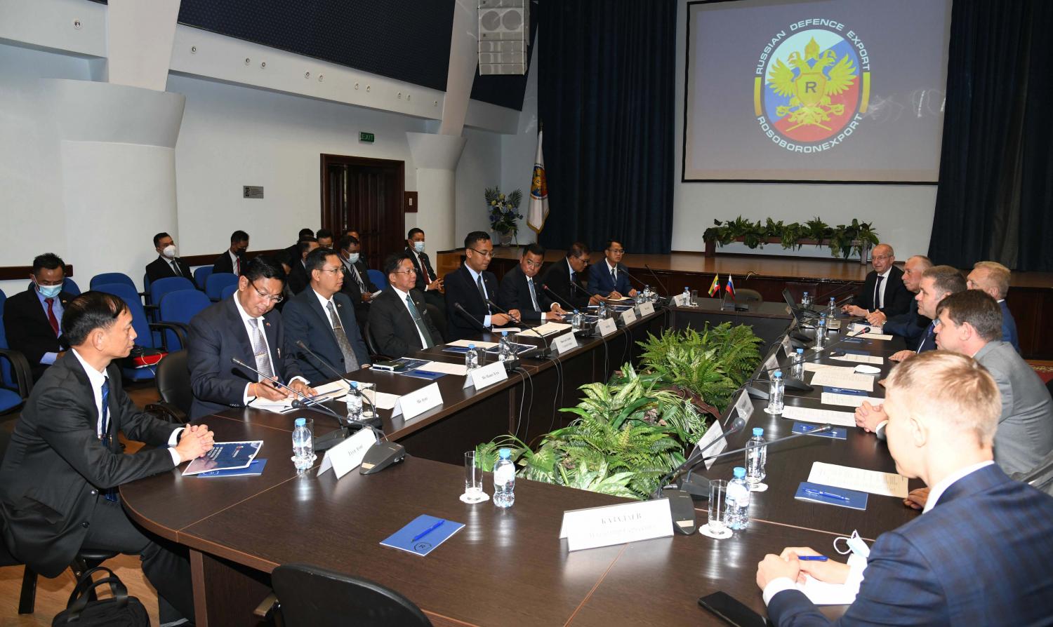ဦးစွာ နိုင်ငံတော်စီမံအုပ်ချုပ်ရေးကောင်စီ ဥက္ကဋ္ဌ၊ တပ်မတော်ကာကွယ်ရေးဦးစီးချုပ်နှင့် အဖွဲ့ဝင်များအား Rosoboronexport ကုမ္ပဏီမှ ဒုတိယညွှန်ကြားရေးမှူးချုပ် Mr. Alexander Shcherbininနှင့် အဖွဲ့ဝင်များက ကြိုဆိုနှုတ်ဆက်ကြသည်။ ထို့နောက် အစည်းအဝေးခန်းမတွင် လက်ထောက်ညွှန်ကြားရေးမှူးချုပ် ဖြစ်သူ Mr. Andrew CHEKMAREW နှင့် တာဝန်ရှိသူများက စစ်ဘက်နည်းပညာဆိုင်ရာ ပူးပေါင်းဆောင်ရွက်နိုင်မည့် ကိစ္စရပ်များကို Power Point Presentation များဖြင့် ရှင်းလင်းတင်ပြရာ ရှင်းလင်းတင်ပြမှုများအပေါ် နိုင်ငံတော်စီမံအုပ်ချုပ်ရေးကောင်စီ ဥက္ကဋ္ဌ၊ တပ်မတော်ကာကွယ်ရေးဦးစီးချုပ်နှင့် အဖွဲ့ဝင်များက သိရှိလိုသည်များအား ပြန်လည် မေးမြန်းဆွေးနွေးခဲ့ကြသည်။