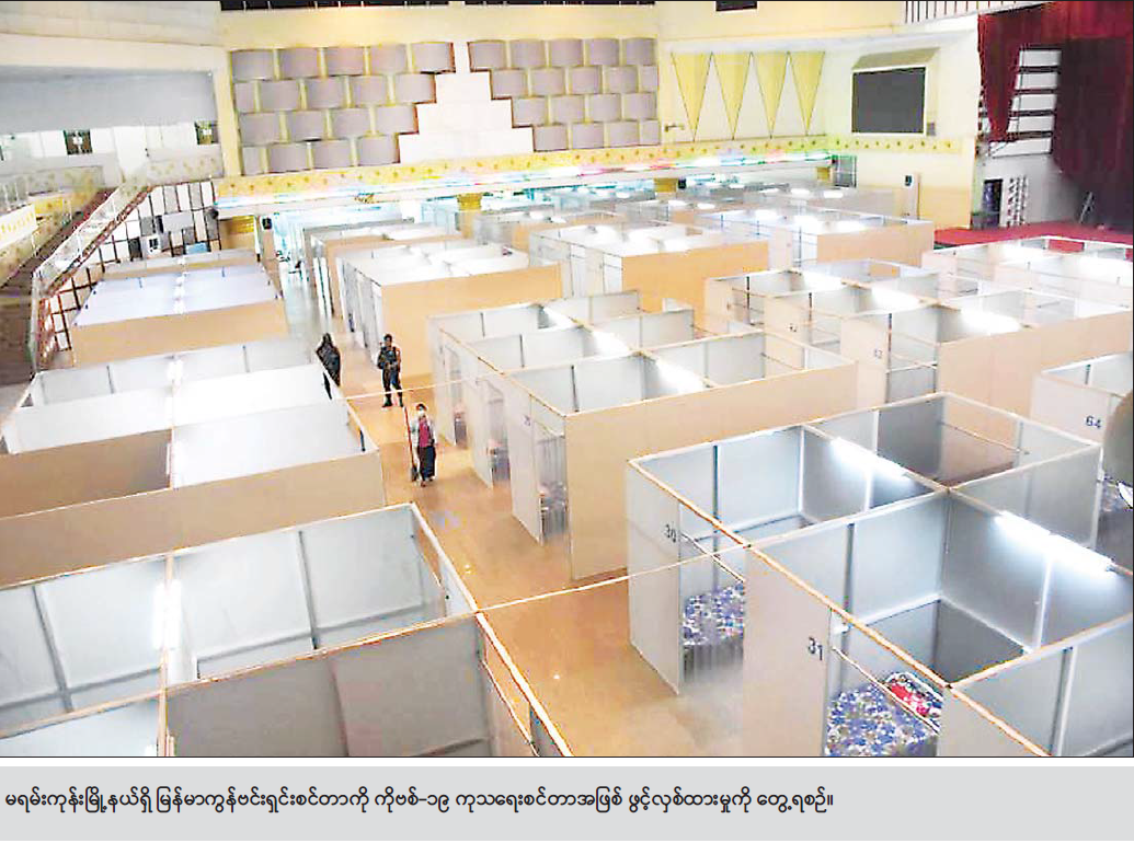 “ကိုဗစ်ရောဂါပိုး ကူးစက်ခံရသူများကို ကျန်းမာရေးနှင့် အားကစားဝန်ကြီးဌာနက ဖွင့်လှစ်ထားသော ပြည်သူ့ဆေးရုံကြီးများတွင် ကုသပေးနေသော်လည်း ယခင်နှစ်ရန်ကုန်တွင် ထိတွေ့ကူးစက်မှုနှုန်းအရ ဆေးရုံခုတင်များ လုံလောက်မှုမရှိသည့်အတွက် အစိုးရ၊ တပ်မတော်၊ စေတနာရှင်အလှူရှင်များနှင့် ပရဟိတအဖွဲ့များ အစီအစဉ်ဖြင့် ကိုဗစ်-၁၉ ကုသရေးစင်တာများ ထပ်မံ ဖွင့်လှစ်ကုသပေးခဲ့ကြောင်း။