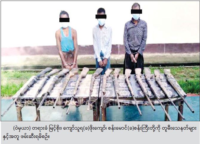 မြို့နယ်အချို့၌ အကြမ်းဖက်မှုလုပ်ရပ်များတွင် အသုံးပြုမည့် လက်နက်၊ ပစ္စည်း၊ ကိရိယာများ နှင့် သိုဝှက်သိမ်းဆည်းထားရှိသူများအား ဆက်လက် ဖော်ထုတ်ဖမ်းဆီးရမိ
