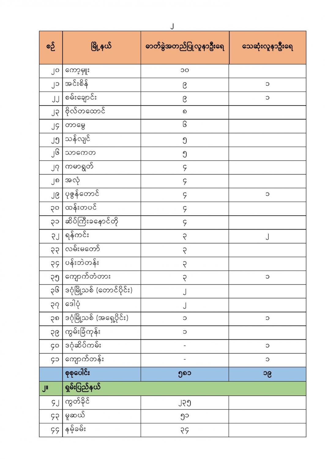 COVID-19 ရောဂါစောင့်ကြပ်ကြည့်ရှုမှု အခြေအနေ (၇-၇-၂၀၂၁) ရက်နေ့၊ ညနေ (၇:၀၀)နာရီ 07/08/2021 (၅-၇-၂၀၂၁)ရက်နေ့၊ ည (၈:၀၀)နာရီမှ (၆-၇-၂၀၂၁)ရက်နေ့၊ ည (၈:၀၀)နာရီအတွင်း တွေ့ရှိရသော COVID-19 ဓာတ်ခွဲအတည်ပြုလူနာ (၃,၆၀၂) ဦး၏ မြို့နယ်အလိုက် တွေ့ရှိရမှု အခြေအနေမှာ အောက်ပါအတိုင်း ဖြစ်ပါသည် -