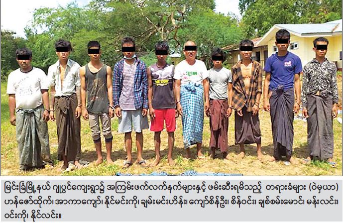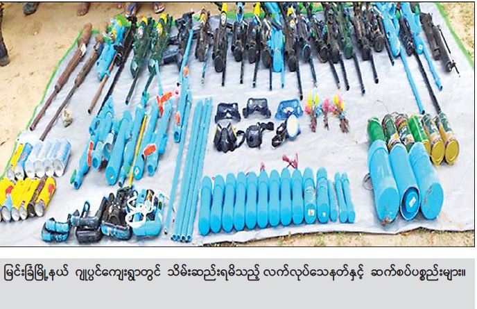 မြင်းခြံမြို့နယ် ဂျုပ္ပင်ကျေးရွာ၌ အကြမ်းဖက်ရာတွင် အသုံးပြုသည့် လက်နက်/ခဲယမ်းများနှင့် ဖောက်ခွဲရေးပစ္စည်းများအား တရားခံများနှင့်အတူ ဖမ်းဆီးရမိ