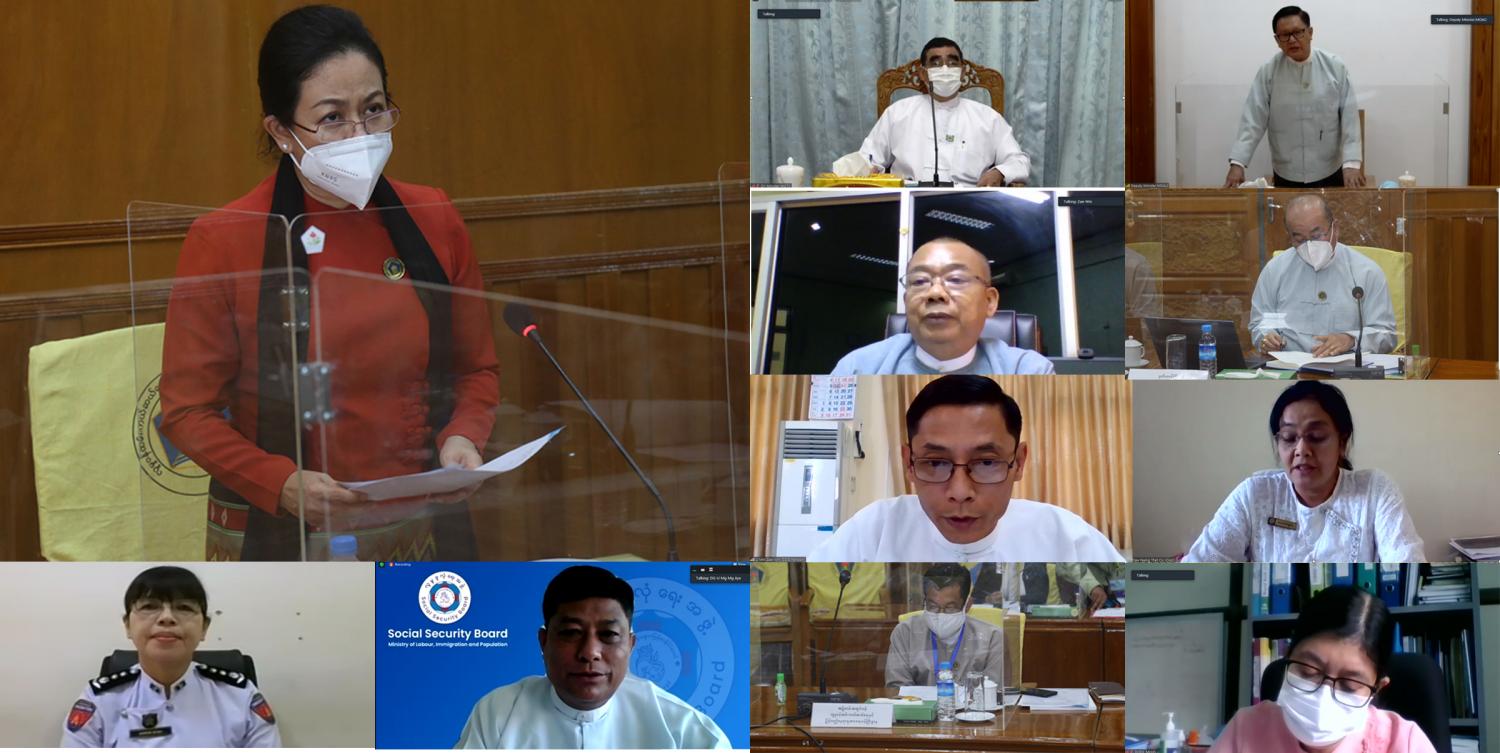 လူမှုကာကွယ်စောင့်ရှောက်ရေးဆိုင်ရာ လုပ်ငန်းကော်မတီ၏ လုပ်ငန်းညှိနှိုင်း အစည်းအဝေး (၁/၂၀၂၁)ကို ယနေ့မွန်းလွဲပိုင်း က လူမှုဝန်ထမ်း၊ ကယ်ဆယ်ရေးနှင့် ပြန်လည်နေရာ ချထားရေးဝန်ကြီးဌာန အစည်းအဝေးခန်းမ၌ ကျင်းပသည်။