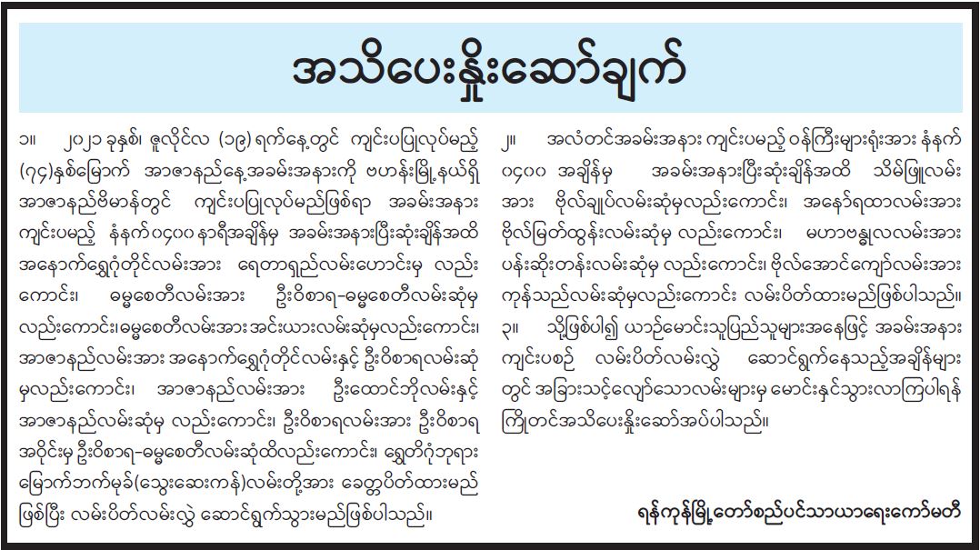 လေပြင်းဘေးကြိုတင်ပြင်ဆင်ရေးနှင့်စပ်လျဉ်း၍ ပြည်သူသို့အသိပေးနှိုးဆော်ချက်