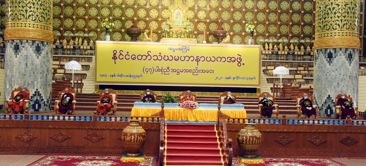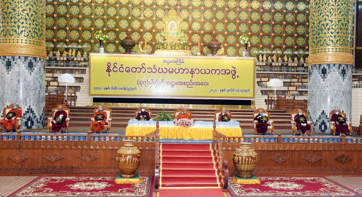 ပြည်ထောင်စုသမ္မတမြန်မာနိုင်ငံတော် အဋ္ဌမအကြိမ် နိုင်ငံတော်သံဃမဟာနာယက အဖွဲ့ (၄၇) ပါးစုံညီ အဋ္ဌမအစည်းအဝေးကို ယနေ့နံနက် ၈ နာရီတွင် ရန်ကုန်မြို့၊ သီရိမင်္ဂလာ ကမ္ဘာအေး ကုန်းမြေရှိ မဟာပါသာဏလိုဏ်ဂူသိမ်တော်ကြီး၌ ကျင်းပသည်။