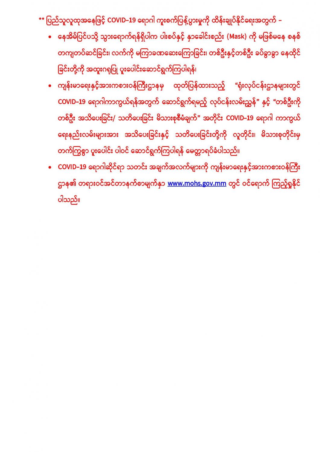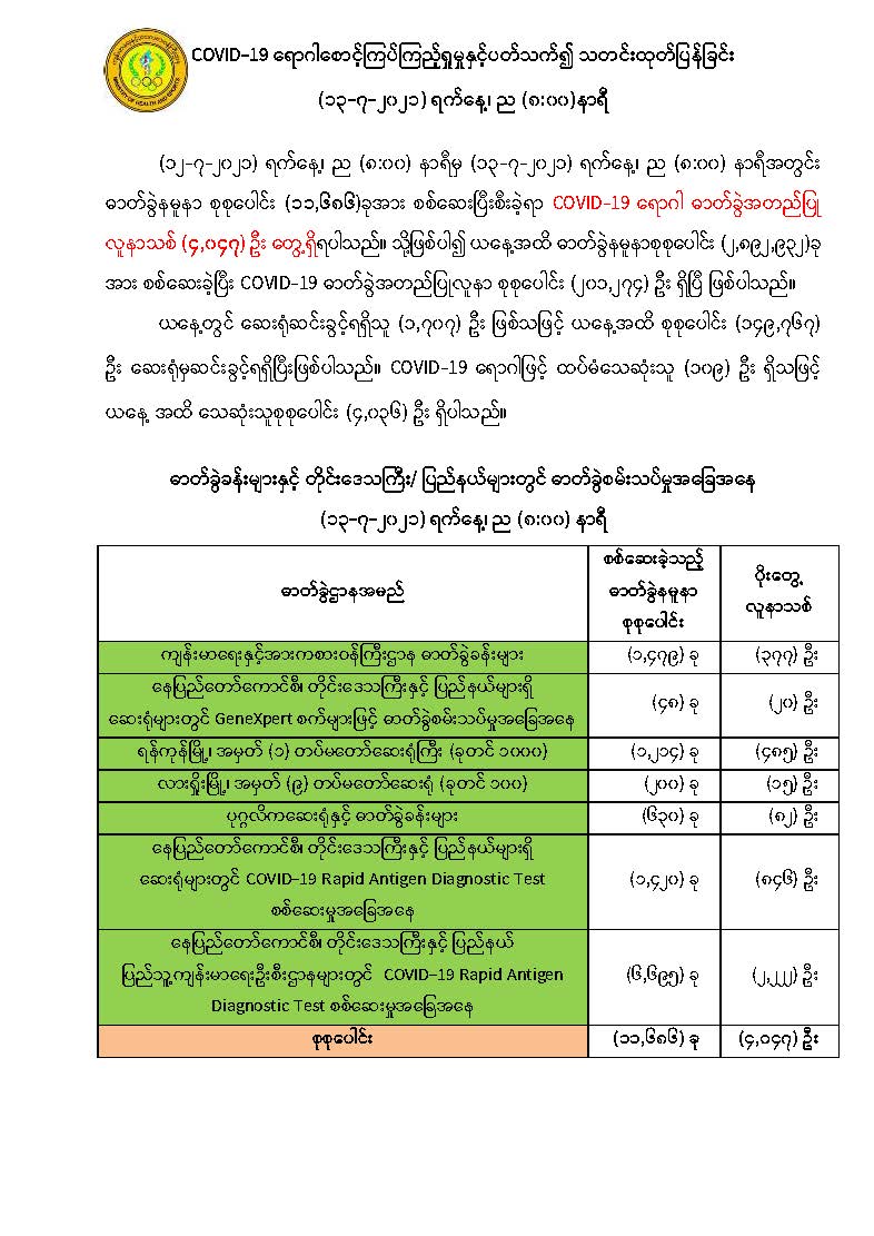 COVID-19 ရောဂါစောင့်ကြပ်ကြည့်ရှုမှုနှင့်ပတ်သက်၍ သတင်းထုတ်ပြန်ခြင်း (၁၃-၇-၂၀၂၁) ရက်နေ့၊ ည (၈:၀၀)နာရီ