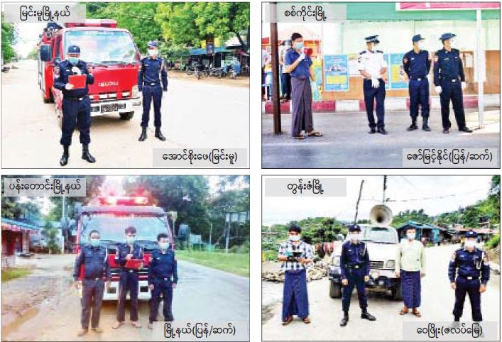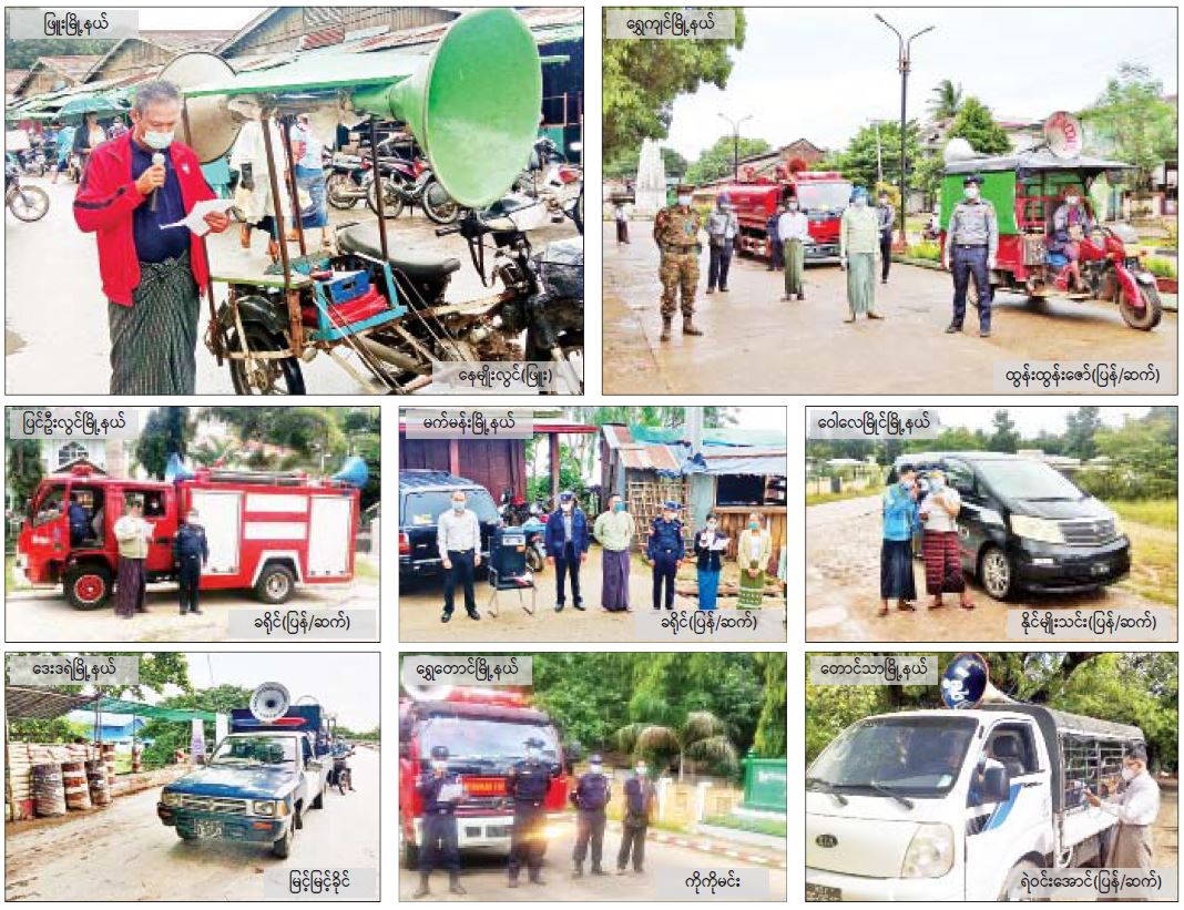 ကိုဗစ်-၁၉ ရောဂါကြိုတင်ကာကွယ်နိုင်ရေးနှင့် ကူးစက်မှုလျော့နည်း စေရေးအတွက် မိဘပြည်သူများ ပူးပေါင်းပါဝင်ဆောင်ရွက်မှသာ ရောဂါကူးစက်မှု လျော့နည်းနိုင်မည်ဖြစ်၍ ပြည်သူများ လိုက်နာဆောင်ရွက်သင့်သည့်အချက်များ၊ ညွှန်ကြားချက်များကို သိရှိလိုက်နာ နိုင်ရန် အသံချဲ့စက်များဖြင့် သတိပေးနှိုးဆော်မှုများကို ဆောင်ရွက်ခဲ့ သည်။