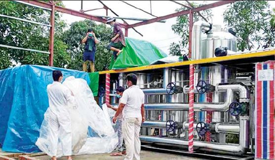 ထိုသို့ Oxygen စက်ရုံများတိုးချဲ့တည်ဆောက်လျက်ရှိရာ ရန်ကုန်တိုင်းဒေသကြီး၊ သန်လျင်မြို့နယ်ရှိ သီလဝါ၊ ရေတပ်သင်္ဘောကျင်းဌာနချုပ်၌ တစ်ရက်လျင် ၄၀ လီတာအိုး (၄၀၀) လုံး ထုတ်လုတ်နိုင်သည့် Oxygen Station တစ်ခုကို ဇူလိုင် ၁၆ ရက်နေ့မှ စတင်ကာ နေဆိုင်း၊ ညဆိုင်းခွဲ၍ ဩဂုတ်လ အလယ်တွင်ဆောက်လုပ်ပြီးစီးနိုင်ရေး တည်ဆောက်လျက်ရှိ ကြောင်းနှင့် Oxygen ထုတ်လုတ်မည့်နည်းစနစ်မှာ လေတုတဲရှိလေကို Air Compressor ဖြင့်စုတ်ယူပြီး Per-Purification Unit ကို ဖြတ်သန်းစီးဆင်းကာ လေတဲတွင်ပါလာသော ကာဗွန်ဒိုင် အောက်ဆိုဒ်နှင့်အခြားဓာတ်ငွေ့များဖယ်ရှာစစ်ထုတ်ပေးပြီး ကျန်ရှိသောအောက်ဆီဂျင်၊ နိုက်ထရိုဂျင်နှင့် အာဂွန်ဓာတ်ငွေ့များအား Fractionating Column သို့ပေးပို့ကာ ၎င်းမှ တဆင့် လိုအပ်သော Oxygen ဓာတ်ငွေ့များအား ထုတ်ပေးသောစနစ်ဖြစ်ကြောင်း သတင်းရရှိသည်။