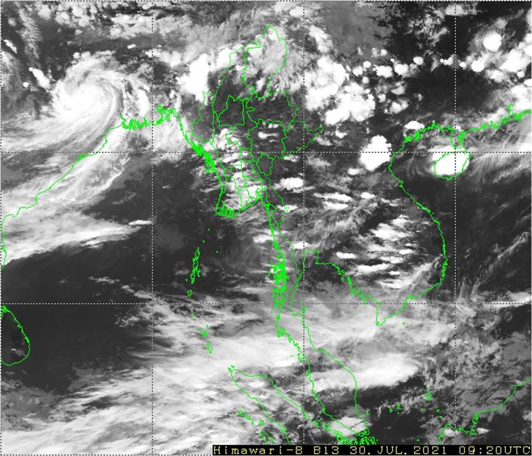 ဘင်္ဂလားပင်လယ်အော်အခြေအနေ။ကပ္ပလီပင်လယ်ပြင်နှင့် ဘင်္ဂလားပင်လယ်အော်တို့တွင် မုတ်သုံလေ အားကောင်းနေပါသည်။