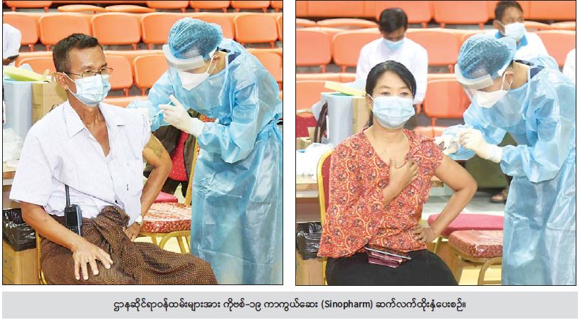နေပြည်တော် ဇူလိုင် ၃၀ နေပြည်တော်ကောင်စီ နယ်မြေအတွင်းရှိ ဝန်ကြီးဌာနပေါင်းစုံမှ ဒုတိယအကြိမ် ကာကွယ်ဆေး ထိုးရန် ကျန်ရှိသည့် ပြည်ထောင်စုအဆင့် ဌာနဆိုင်ရာ ဝန်ထမ်းများနှင့် နေပြည်တော်အဆင့် ဌာနဆိုင်ရ | ဝန်ထမ်းများကို ယနေ့နံနက်ပိုင်းတွင် နေပြည်တော်ရှိ ဝဏ္ဏသိဒ္ဓိ အားကစားကွင်း (C) ရုံ၌ ကိုဗစ် - ၁၉ ကာကွယ်ဆေး (Sinopharm) ကို ဆက်လက်ထိုးနှံ ပေးလျက်ရှိသည်။ ဦးစားပေးအစီအစဉ်အတိုင်းထိုးနှံပေး ကိုဗစ် -၁၉ ကာကွယ်ဆေး (Sinopharm) ထိုးနှံ ခြင်းလုပ်ငန်းစဉ်နှင့် ပတ်သက်၍ နေပြည်တော် ပြည်သူ့ကျန်းမာရေးဦးစီးဌာန လက်ထောက်ညွှန်ကြားရေးမှူး ဒေါ်အေးအေးမော်က “ ကာကွယ် ဆေးထိုးဖို့လာရင် အရင်ဆုံး Registration လုပ်ရပါတယ်။ ဝန်ကြီးဌာနတွေကလည်း ကြိုပြီးတော့ အမည်စာရင်းတွေ ပို့ထားတဲ့အတွက် ကာကွယ် ဆေးထိုးမှတ်တမ်းစာအုပ်ကို ထုတ်ပေးပါတယ်။ ဒီနေ့တော့ နေပြည်တော်မှာ ဒုတိယအကြိမ် ကာကွယ်ဆေးထိုးဖို့ကျန်တဲ့ ပြည်ထောင်စုအဆင့် ဌာနဆိုင်ရာဝန်ထမ်းတွေနဲ့ နေပြည်တော်အဆင့် ဌာနဆိုင်ရာ ဝန်ထမ်းတွေ ကို ကာကွယ်ဆေးထိုးပေး တာဖြစ်ပါတယ်။ ကျန်းမာရေးနှင့် အားကစားဝန်ကြီးဌာနရဲ့ ဦးစားပေး အစီအစဉ်အတိုင်း အုပ်စုအလိုက် ဆက်လက်ထိုးနှံပေးတာ ဖြစ်ပါတယ်။ ဒီနေ့ထိုးတာ ကတော့ နေပြည်တော်အဆင့် ဝန်ထမ်းတွေတော်တော်များများ ပါဝင်ပါတယ်။ ပြီးခဲ့တဲ့ ၂၇ ရက် နဲ့ ၂၈ ရက်တွေမှာ အကြောင်းအမျိုးမျိုးကြောင့် မထိုးဖြစ်တဲ့ ဝန်ထမ်းတွေလည်း ဒီနေ့လောက် ထိုးနှံကြပါတယ်” ဟု ပြောသည်။ ကိုဗစ် - ၁၉ ကာကွယ်ဆေး (Sinophamm) မထိုးမီ သွေးပေါင်ချိန်တိုင်းတာခြင်း၊ သွေးထဲတွင် ရှိသည့် အောက်ဆီဂျင်ပမာဏ တိုင်းတာခြင်းနှင့် အပူချိန်တိုင်းတာခြင်းတို့ကို ဦးဆောင်ရွက်ပြီး ယင်းလုပ်ငန်းစဉ်များ ပုံမှန်ဖြစ်မှသော ကာကွယ်ဆေး ထိုးနှံပေးခြင်းဖြစ်ကာ အရေးပေါ် ကျန်းမာရေး စောင့်ရှောက်မှုများလိုအပ်ပါက သမားတော်အဖွဲ့ဖြင့် ကုသပေးနိုင်ရန် စီစဉ်ထားကြောင်း သိရသည်။ ဆက်လက်၍ လက်ထောက်ညွှန်ကြားရေးမှူး ဒေါ်အေးအေးမော်က “အရင်က ထိုးပေးခဲ့တဲ့ ကိုဗစ်၁၉ ကာကွယ်ဆေး (COVISHIELD)တုန်းကတော့ ဆေးတစ်လုံးကို ၁၀ ဦးထိုးရတာပါ။ အခုထိုးတဲ့ကွယ်ဆေး (Sinopharm)ကတော့ ဆေးတစ်လုံးကို တစ်ဦးပဲထိုးရတဲ့ ဆေးဖြစ်ပါ တယ်။ ကာကွယ်ဆေး ထိုးပြီးပြီဆိုပေမယ့် ကာကွယ်ဆေး တစ်ခုတည်းကို အားကိုးနေလို့ မရပါဘူး။ Sodal Distancing နေထိုင်ခြင်း၊ Mask တပ်ခြင်းနဲ့ လက်ဆေးခြင်း တွေကို ဆက်လက်လုပ်ဆောင် သွားရမှာပါ။ အခုထိုးတဲ့ ကာကွယ်ဆေးကြောင့် ကျန်းမာရေးနဲ့ ပတ်သက်ပြီး ထူးထူးခြားခြားဖြစ်တာ မတွေ့သေးပါဘူး။ နောက်ထပ်လည်း ကာကွယ်ဆေး တွေ ထပ်ရောက်ဖို့ရှိပါတယ်။ ကာကွယ်ဆေးတွေ ထပ်ရောက်လာလို့ရှိရင်လည်း ရောက်ရှိလာတဲ့ ကာကွယ်ဆေးအရေအတွက်ပေါ် မူတည်ပြီး ကျန်းမာရေးနှင့် အားကစားဝန်ကြီးဌာနရဲ့ ဦး