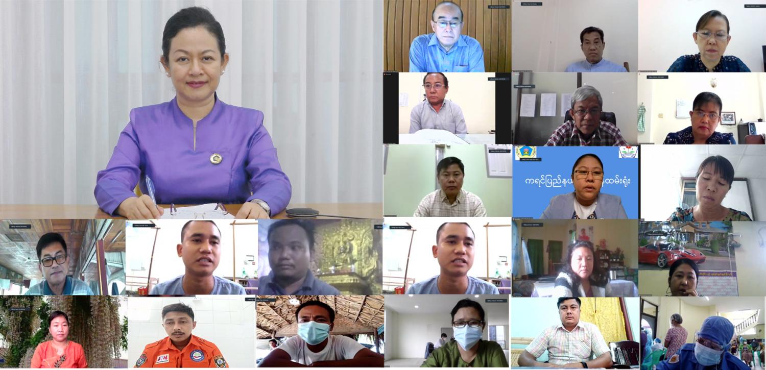 လူမှုဝန်ထမ်း၊ ကယ်ဆယ်ရေးနှင့် ပြန်လည်နေရာချထားရေးဝန်ကြီးဌာနမှ နေပြည်တော်ကောင်စီ၊ တိုင်းဒေသကြီး/ပြည်နယ်များရှိ စေတနာ့ဝန်ထမ်းများ/ပရဟိတ အဖွဲ့အစည်းများနှင့် တွေ့ဆုံ ဆွေးနွေးပွဲများမှ တင်ပြချက်များနှင့်ပတ်သက်၍ နိုင်ငံတော်မှ ပံ့ပိုးကူညီပေးမည့် အစီအစဉ်များကို သိရှိနိုင်ရေး ထပ်ဆင့်မျှဝေရှင်းလင်းခြင်း အစီအစဉ်ကို ယနေ့မွန်းလွဲ ၂ နာရီတွင် Online ဖြင့် ကျင်းပသည်။