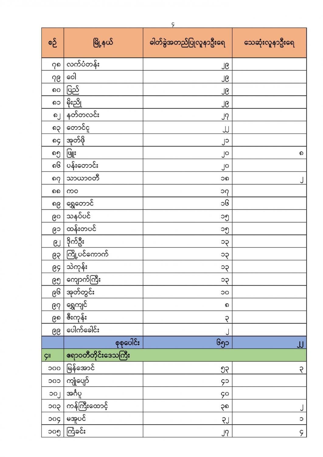 COVID-19 ရောဂါစောင့်ကြပ်ကြည့်ရှုမှု အခြေအနေ (၃၁-၇-၂၀၂၁) ရက်နေ့၊ ညနေ (၄:၀၀)နာရီ 07/31/2021 (၂၉-၇-၂၀၂၁)ရက်နေ့၊ ည (၈:၀၀) နာရီမှ (၃၀-၇-၂၀၂၁)ရက်နေ့၊ ည (၈:၀၀) နာရီအတွင်း တွေ့ရှိရသော COVID-19 ဓာတ်ခွဲအတည်ပြုလူနာ (၅,၁၂၇) ဦး၏ မြို့နယ်အလိုက် တွေ့ရှိရမှု အခြေ အနေမှာ အောက်ပါအတိုင်း ဖြစ်ပါသည် - #Ministry_of_Health_and_Sports_Myanmar