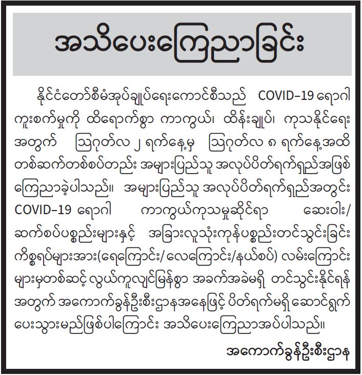 ဦးစီးဌာနနှင့် လုပ်ငန်းများ၏ ကြေညာချက်များ