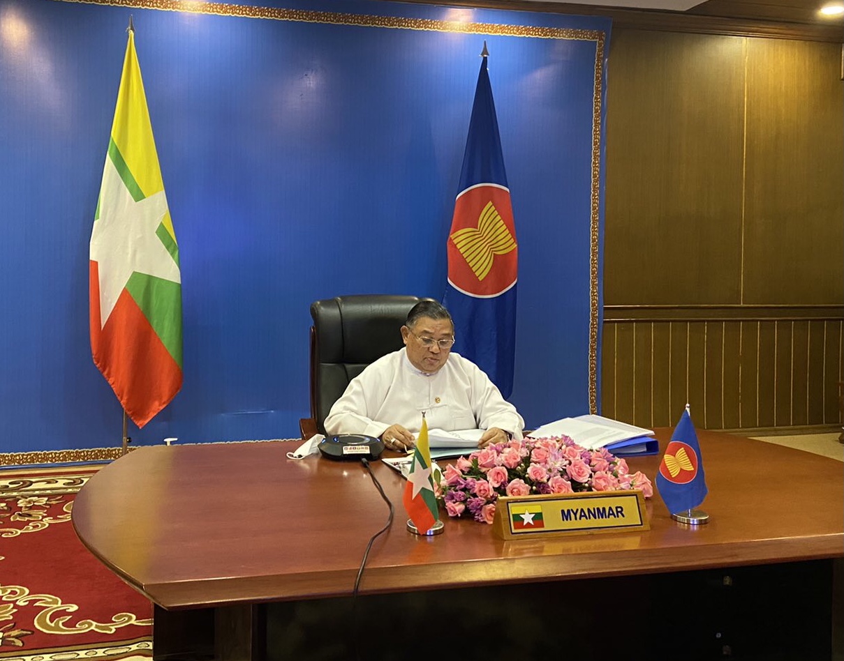 ဆက်လက်၍ အာဆီယံ-တရုတ် နိုင်ငံခြားရေးဝန်ကြီးများ အစည်းအဝေးကို တဆက် စပ်တည်း ကျင်းပခဲ့ရာ ဖိလစ်ပိုင်နိုင်ငံခြားရေးဝန်ကြီး H.E. Teodoro Locsin Jr နှင့် တရုတ် နိုင်ငံတော် ကောင်စီဝင်နှင့် နိုင်ငံခြားရေးဝန်ကြီး H.E. Wang Yi တို့က ပူးတွဲသဘာပတိ များအဖြစ် ဆောင်ရွက်ခဲ့ကြသည်။ အစည်းအဝေးတွင် နိုင်ငံခြားရေးဝန်ကြီးဌာန၊ ပြည်ထောင် စုဝန်ကြီးက အာဆီယံနှင့် တရုတ်ပြည်သူ့သမ္မတနိုင်ငံတို့အကြား အိမ်နီးချင်းကောင်း ဆက်ဆံ ရေး၊ အပြန်အလှန်ယုံကြည်မှု၊ ထောက်ပံ့မှုနှင့် အကျိုးဖြစ်ထွန်းစေမှုတို့ဖြင့် အာဆီယံ- တရုတ် ဆွေးနွေး ဖက်ဆက်ဆံရေး၏ နှစ်ပေါင်း (၃၀) ကျော်ခရီးတွင် စဉ်ဆက်မပြတ် တိုးတက် လျက်ရှိခြင်းကို ကျေနပ်အားရမှုရှိကြောင်း၊ အာဆီယံ-တရုတ် ဆွေးနွေးဖက် ဆက်ဆံရေး နှစ်ပတ်လည် အထိမ်းအမှတ် ထိပ်သီးအစည်းအဝေးကို ကြိုလင့်လျက် ၂၀၂၂ ခုနှစ်အတွက် ဆွေးနွေးဖက် ဆက်ဆံရေး၏ ဦးတည်ချက်ဆောင်ပုဒ်အဖြစ် "စဉ်ဆက်မပြတ် ဖွံ့ဖြိုးတိုးတက် ရေးပူးပေါင်း ဆောင်ရွက်မှု" (Sustainable Development Cooperation) ကို ဆက်လက် ဖော်ဆောင်ရန် တရုတ်နိုင်ငံ၏ အဆိုပြုချက်ကိုလည်း ကြိုဆိုကြောင်း၊ ကိုဗစ်-၁၉ အာဆီယံ တုန့်ပြန်ရေး ရန်ပုံငွေနှင့် ပြည်သူ့ကျန်းမာရေး အရေးပေါ် အခြေအနေဆိုင်ရာ စီမံကိန်းများ အတွက် အာဆီယံ-တရုတ် ပူးပေါင်းဆောင်ရွက်ရေး ရန်ပုံငွေတို့တွင် တရုတ်နိုင်ငံမှ ထောက်ပံ့ မှုများကို ကျေးဇူးတင်ရှိကြောင်း၊ တရုတ်နိုင်ငံမှ ကိုဗစ်-၁၉ ကာကွယ်ဆေးများနှင့် ဆက်စပ် ဆေးပစ္စည်းအထောက်အပံ့များ လှူဒါန်းခြင်း အတွက်လည်း ကျေးဇူးတင်ရှိကြောင်း ဆွေးနွေး ပြောကြားသည်။