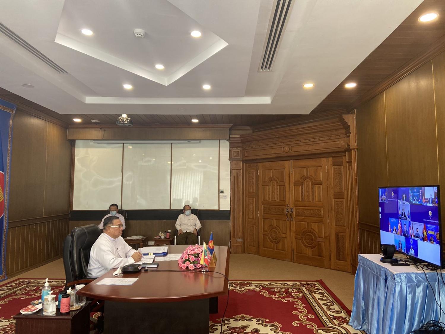 (၂၂) ကြိမ်မြောက် အာဆီယံအပေါင်းသုံး နိုင်ငံခြားရေးဝန်ကြီးများ အစည်းအဝေးကို ဘရူနိုင်း နိုင်ငံခြားရေးဝန်ကြီး(၂) Dato Erywan Pehin Yusof က သဘာပတိအဖြစ် ဆောင်ရွက်၍ အာဆီယံအဖွဲ့ဝင်နိုင်ငံများမှ နိုင်ငံခြားရေးဝန်ကြီးများ၊ အပေါင်းသုံးနိုင်ငံ (တရုတ်၊ ဂျပန်နှင့် ကိုရီးယားသမ္မတနိုင်ငံ)တို့မှ နိုင်ငံခြားရေးဝန်ကြီးများနှင့် အာဆီယံ အတွင်းရေးမှူးချုပ်တို့ ပါဝင်တက်ရောက်ခဲ့ကြသည်။ အစည်းအဝေး၌ နိုင်ငံခြားရေး ဝန်ကြီး များသည် ဒေသတွင်းနှင့် နိုင်ငံ တကာကိစ္စရပ်များ၊ အာဆီယံ အပေါင်းသုံးမူဘောင် အောက်ရှိ ပူးပေါင်းဆောင်ရွက်မှုကဏ္ဍများကို ပြန်လည်သုံးသပ်ခဲ့ကြပြီး ရှေ့လုပ်ငန်းများအပေါ် အမြင် ချင်းဖလှယ် ဆွေးနွေးခဲ့ကြသည်။ ပြည်ထောင်စုဝန်ကြီးက ကိုဗစ်-၁၉ ကူးစက်ပြန့်ပွားမှု ကို ထိထိရောက်ရောက် တိုက်ဖျက်ရေး၊ ကာကွယ်ဆေး သာတူညီမျှရရှိရေး၊ ကုန်ထုတ် စွမ်းအင် ဆုံးရှုံးမှု သက်သာစေရန် ဒီဂျစ်တယ် စီးပွားရေး ဖွံ့ဖြိုးလာစေရေးနှင့် ဒေသတွင်းနှင့် ကမ္ဘာလုံး ဆိုင်ရာ ကုန်စည်စီးဆင်းမှု စီမံခန့်ခွဲမှုများကို မြှင့်တင်ရေးတို့သည် အရေးကြီးကြောင်း အလေးပေးပြောကြားသည်။