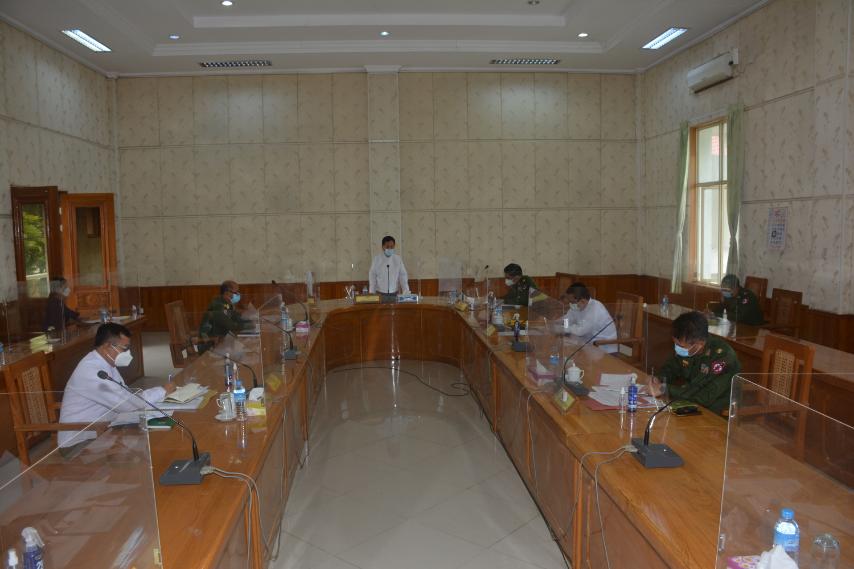နေပြည်တော်ကောင်စီနယ်မြေအတွင်း ဆောင်ရွက်နေသည့် ကိုဗစ်-၁၉ ရောဂါ ကာကွယ်၊ ထိန်းချုပ်ကုသရေးဆိုင်ရာ လုပ်ငန်းညှိနှိုင်းအစည်းအဝေးကို ယနေ့ နံနက်ပိုင်းတွင် နေပြည်တော် ကောင်စီရုံး အစည်းအဝေးခန်းမ (၁) ၌ ကျင်းပသည်။