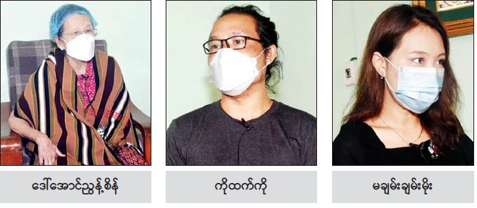 မြန်မာနိုင်ငံသဘင်အစည်းအရုံးမှ သဘင်ပညာရှင် အဘိုးအဘွားများနှင့် တာဝန်ထမ်းဆောင်ဆဲ အဖွဲ့ဝင်များအား ဩဂုတ် ၂၀ ရက် နံနက်ပိုင်းတွင် ရန်ကုန်တိုင်းဒေသကြီး ဒဂုံမြို့သစ် (တောင်ပိုင်း) မြို့နယ်ရှိ အမျိုးသားယဉ်ကျေးမှုနှင့် အနုပညာတက္ကသိုလ် (ရန်ကုန်) တွင် ကျန်းမာရေးဝန်ကြီးဌာနမှ ကျန်းမာရေးဝန်ထမ်းများက ကိုဗစ်-၁၉ ကာကွယ်ဆေးထိုးနှံပေးရာ ကိုဗစ်-၁၉ ကာကွယ်ဆေး လာရောက်ထိုးနှံကြသည့် မြန်မာနိုင်ငံသဘင် အစည်းအရုံးမှ သဘင်ပညာရှင်များနှင့် တာဝန်ရှိသူများ၏ စကားသံများကို တွေ့ဆုံမေးမြန်းဖော်ပြလိုက်ပါသည်။