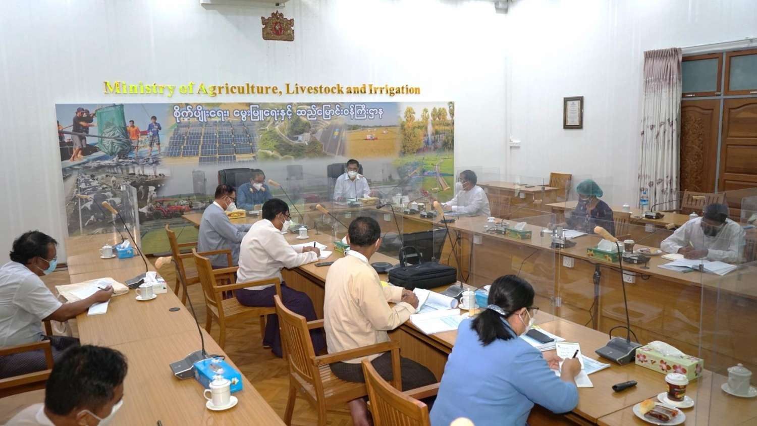 အဆိုပါကိစ္စနှင့် ပတ်သက်သည့် ညှိနှိုင်းအစည်းအဝေးကို ယနေ့ မွန်းလွဲပိုင်းက နေပြည်တော် ရုံးအမှတ်(၁၅)၌ ကျန်းမာရေးဆိုင်ရာ ညွှန်ကြားချက်များနှင့်အညီ ကျင်းပရာ အစည်းအဝေးသို့ စိုက်ပျိုးရေး၊ မွေးမြူရေးနှင့် ဆည်မြောင်းဝန်ကြီးဌာန ပြည်ထောင်စုဝန်ကြီး ဦးတင်ထွဋ်ဦး၊ သိပ္ပံနှင့်နည်းပညာဝန်ကြီးဌာန ပြည်ထောင်စုဝန်ကြီး ဒေါက်တာမျိုးသိန်းကျော်၊ ဒုတိယဝန်ကြီး ဒေါက်တာအောင်ကြီး၊ အမြဲတမ်းအတွင်းဝန်နှင့် ညွှန်ကြားရေးမှူးချုပ်များ၊ ပါမောက္ခချုပ်နှင့် တာဝန်ရှိသူများ တက်ရောက်ဆွေးနွေးခဲ့ကြသည်။