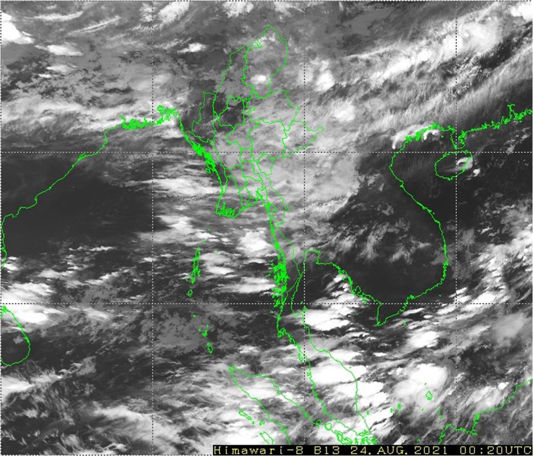 ဘင်္ဂလားပင်လယ်အော်အခြေအနေ။ ကပ္ပလီပင်လယ်ပြင်နှင့် ဘင်္ဂလားပင်လယ်အော်တောင်ပိုင်းတို့တွင် မုတ်သုံလေ အားအနည်းငယ်မှ အားအသင့်အတင့် ရှိနေပြီး၊ ကျန်ဘင်္ဂလားပင်လယ်အော်တွင် မုတ်သုံလေ အားနည်းနေပါသည်။