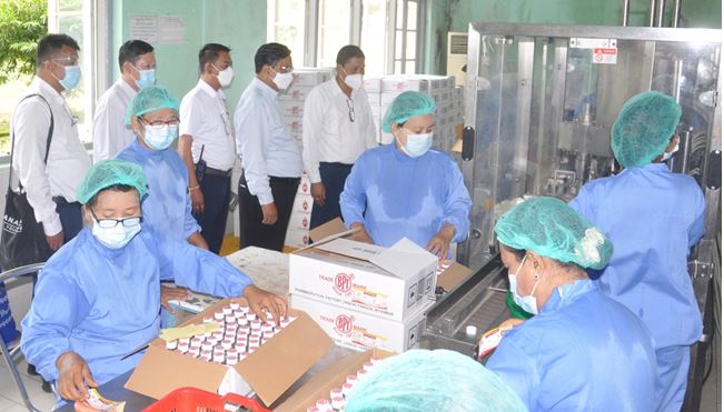 ထို့ကြောင့်စက်ရုံပိုင် မြေကွက်လပ်များတွင် ရာသီဥတုနှင့် ကိုက်ညီသည့် စက်မှုကုန်ကြမ်း သီးနှံများ စိုက်ပျိုးရန်နှင့်မွေးမြူရေးလုပ်ငန်းများကို တွဲဖက်ဆောင်ရွက် ရန်၊ လက်ရှိအချိန်တွင် စက်ရုံ၌ ထုတ်လုပ်လျက်ရှိသည့် အရက်ပြန်များကို ကောင်းမွန်သော ထုတ်လုပ်မှုနည်းစဉ် GMP Guideline များအတိုင်း တိတိကျကျ လိုက်နာဆောင်ရွက်ရန်၊ ကိုဗစ်-၁၉ ရောဂါ ကာကွယ်ရေးလုပ်ငန်းများတွင် အသုံးပြု လျက်ရှိသည့် အရက်ပြန်များကို ယခုထက် ပိုမိုထုတ်လုပ်နိုင်ရေး စီမံဆောင်ရွက်ရန်၊ ထုတ်ကုန်ပစ္စည်းများကို အရည်အသွေး ကောင်းမွန်ပြီး စံချိန်စံညွှန်း ပြည့်မီစွာ ထုတ်လုပ်နိုင်ရေးအတွက် ဝန်ထမ်းများ၏ စွမ်းဆောင်ရည်များကို မြှင့်တင်ပေးရန်၊ စက်ရုံပိုင်မြေ၊ အိမ်ယာ၊ အဆောက်အဦ၊ စက်ပစ္စည်းစသည့် ပုံသေပိုင်ပစ္စည်းများ စီမံခန့်ခွဲမှု အစီအမံများကို အလေးထားဆောင်ရွက်ရန်နှင့် စက်ရုံပိုင်မြေဧရိယာ လုံခြုံရေးစစ်ဆေးကြပ်မတ်ဆောင်ရွက်ရန် လမ်းညွှန်မှာကြားပြီး စက်ရုံအတွင်းရှိ ယခင်ကအချိုမှုန့်နှင့် ကော်မှုန့်ထုတ်လုပ်ခဲ့သည့် စက်ပစ္စည်းများနှင့် အရက်ပြန်များ ထုတ်လုပ်နေမှုတို့ကို လှည့်လည်ကြည့်ရှုစစ်ဆေးသည်။