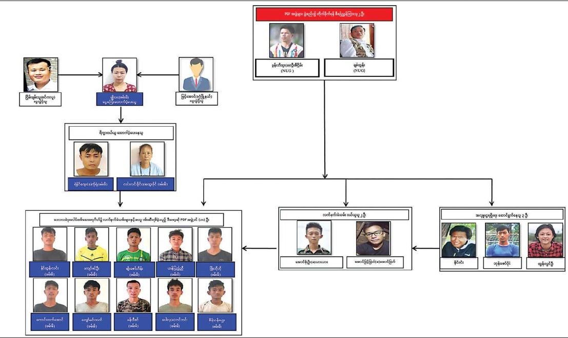 နိုင်ငံတော်တည်ငြိမ်အေးချမ်းမှုကို ပျက်ပြားထိခိုက်စေရန်ရည်ရွယ်၍ စာသင်ကျောင်းများ အပါအဝင် အစိုးရပိုင်အဆောက်အဦများအား မီးရှို့ဖျက်ဆီးခြင်း၊ အများပြည်သူသွားလာ လှုပ်ရှားလျက်ရှိသည့်နေရာများအား မိုင်းထောင်တိုက်ခိုက်ခြင်း၊ အပြစ်မဲ့လူပုဂိ္ဂုလ် များအား ဒလန်အဖြစ် စွပ်စွဲသတ်ဖြတ်ခြင်း၊ လုံခြုံရေးတပ်ဖွဲ့ဝင်များအား လုပ်ကြံ သတ်ဖြတ်ခြင်းများ လုပ်ဆောင်လျက်ရှိသည့် ကယားပြည်နယ်ရှိ အကြမ်းဖက် PDF အဖွဲ့များကို ငွေကြေး၊ ဝတ်စုံ၊ ရိက္ခာ၊ ဆေးဝါးများ ထောက်ပံ့ပေးလျက်ရှိသည့် မျိုးပပအား ဩဂုတ်လ ၁၂ ရက် ညပိုင်းတွင် ရန်ကုန်တိုင်းဒေသကြီး၊ သန်လျင်မြို့နယ်၊ Star City အိမ်ရာ၊ အခန်းအမှတ် (A3/1023)၌ ဖမ်းဆီးရမိခဲ့သည်။