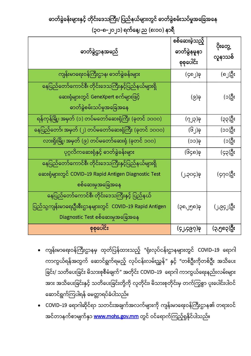 COVID-19 ရောဂါစောင့်ကြပ်ကြည့်ရှုမှုနှင့်ပတ်သက်၍သတင်းထုတ်ပြန်ခြင်း (၃၀-၈-၂၀၂၁) ရက်နေ့၊ ည (၈:၀၀)နာရီ 08/30/2021