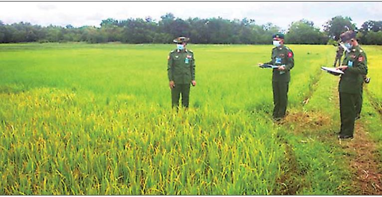 အစိုးရ၊ တပ်မတော်နှင့် ပုဂ္ဂလိကပိုင် ဒေသတွင်းစိုက်ပျိုးမွေးမြူရေးနှင့် အခြားလူသုံး ကုန်လုပ်ငန်းများ ကုန်ထုတ်လုပ်မှု ရာနှုန်းပြည့် ထုတ်လုပ်နိုင်ရေးအတွက် ယနေ့တွင် အနောက်တောင်တိုင်းစစ်ဌာနချုပ် တိုင်းမှူးဗိုလ်ချုပ်အောင်အောင်နှင့် အဖွဲ့ဝင်များသည် ပုသိမ်တပ်နယ်အတွင်းရှိနယ်မြေခံတပ်များတွင် မိုးစပါးစိုက်ပျိုးရေးလုပ်ငန်းများနှင့် မွေးမြူရေး လုပ်ငန်းများ ဆောင်ရွက်ထားရှိမှု အခြေအနေများကို သွားရောက်ကြည့်ရှု၍ လိုအပ်သည်များ ပေါင်းစပ် ညှိနှိုင်းဆောင်ရွက်ပေးသည်။