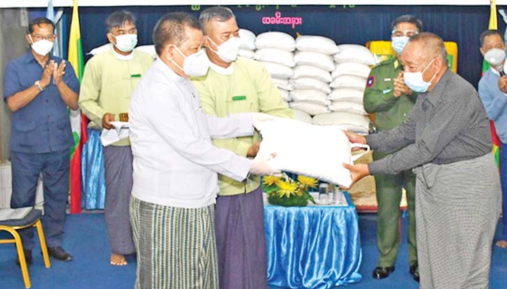 ထိုသို့ ပေးအပ်လျက်ရှိရာ ယနေ့တွင် စစ်ကိုင်းတိုင်းဒေသ ကြီး ဝက်လက်မြို့၊ အရာတော် မြို့နယ်၊ ယင်းမာပင်မြို့နယ်၊ ပုလဲမြို့နယ်နှင့် ဆားလင်းကြီး မြို့နယ်တို့ရှိ ပြည်သူ့ဆေးရုံ များမှ ကျန်းမာရေးဝန်ထမ်းများအတွက် စားသောက်ဖွယ်ရာများနှင့် ကိုဗစ်- ၁၉ ရောဂါ ကာကွယ်ရေး အထောက်အကူပြု ပစ္စည်းများကိုလည်းကောင်း၊ မန္တလေးတိုင်းဒေသကြီးအတွင်းရှိ သဘင်ပညာ ရှင် ၈၄၀၃ ဦးအတွက် ဆန်အိတ် ၂၁၀၀ နှင့် ဆီပိဿာ ၄၂၀၀ ကိုလည်းကောင်း ၊ မန္တလေး တိုင်းဒေသကြီးအတွင်းရှိ တက္ကသိုလ်၊ ဒီဂရီကောလိပ်များမှ ဝန်ထမ်းများအတွက် ဂုဏ်ပြု ထောက်ပံ့ငွေများဖြစ်သည့် ဆေးတက္ကသိုလ် ခြောက်ခုအတွက် ငွေကျပ် ၁၀၅ သိန်း၊ တက္ကသိုလ် ၁၀ ခုအတွက် ငွေကျပ် ၂၈၅ သိန်း၊ ကွန်ပျူတာတက္ကသိုလ် သုံးခု အတွက် ငွေကျပ် ၄၅ သိန်း၊ နည်းပညာတက္ကသိုလ် ရှစ်ခုအတွက် ငွေကျပ်သိန်း ၁၇၀ ၊ ဒီဂရီကောလိပ်၊ ကောလိပ်၊ စိုက်သိပ္ပံကျောင်း ငါးခုအတွက် ငွေကျပ် သိန်း ၇၀ တို့ကိုလည်း ကောင်း၊ တောင်သာမြို့၌ ကိုဗစ်-၁၉ ရောဂါ ကာကွယ်၊ ထိန်းချုပ်၊ ကုသရေး လုပ်ငန်းများတွင် စွမ်းစွမ်းတမံ ဆောင်ရွက် ပေးခဲ့သည့် လူမှုရေးအဖွဲ့များနှင့် ဝန်ထမ်းများအား ထောက်ပံ့ငွေနှင့် ဂုဏ်ပြုမှတ်တမ်းလွှာများ ကို လည်းကောင်း တိုင်းဒေသကြီးနှင့် ပြည်နယ်ဝန်ကြီးချုပ်များ၊ တိုင်းစစ်ဌာနချုပ်အသီးသီးမှ တိုင်းမှူးများနှင့် တာဝန်ရှိသူများက အသီးသီးသွားရောက် ထောက်ပံ့လှူဒါန်းကြရာ သဘင် ပညာရှင်များ၊ ဝန်ထမ်းများနှင့် လူမှုရေးအသင်းအဖွဲ့များက လက်ခံရယူ၍ ကျေးဇူးတင် စကား များ ပြန်လည်ပြောကြားခဲ့ကြောင်း သတင်းရရှိသည်။