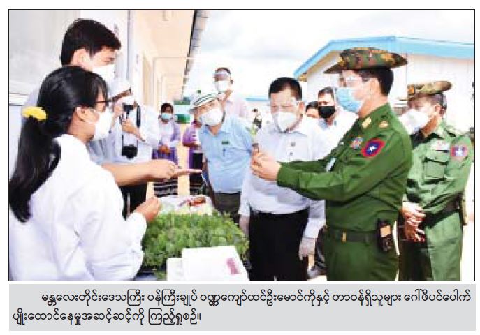 မန္တလေးတိုင်းဒေသကြီး ဝန်ကြီးချုပ် ဝဏ္ဏကျော်ထင် ဦးမောင်ကို၊ အလယ်ပိုင်းတိုင်းစစ်ဌာနချုပ် တိုင်းမှူး ဗိုလ်ချုပ်ကိုကိုဦးတို့သည် တိုင်းဒေသကြီးဝန်ကြီးများနှင့်အတူ ပြင်ဦးလွင်မြို့နယ် သက္ကံချိုင်းကျေးရွာရှိ Haewoo Myanmar Co.,Ltd Dextrose Monohydrate ဂေါ်ဖီထုပ်၊ မုန်လာဥနီအခြောက်ခံ စက်ရုံသို့ ယနေ့ နံနက် ၁၀ နာရီခွဲက ရောက်ရှိလာရာ မန္တလေး တိုင်းဒေသကြီး စိုက်ပျိုးရေးဦးစီးဌာနမှ ညွှန်ကြားရေးမှူး ဦးတိုးမင်းနှင့် စက်ရုံမှတာဝန်ရှိသူ များက ကြိုဆိုနှုတ်ဆက်ကြသည်။