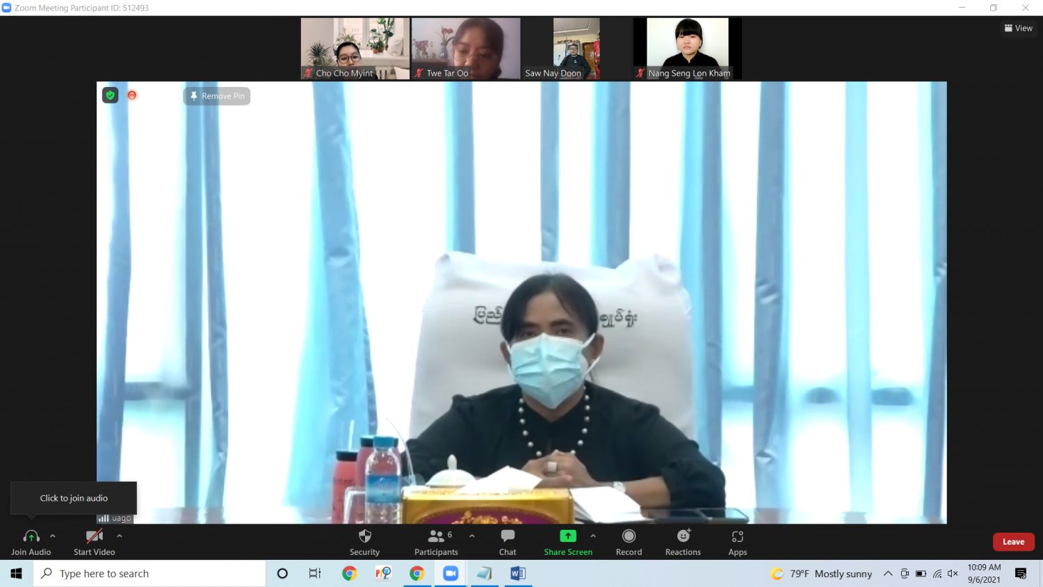 ဥပဒေရေးရာဝန်ကြီးဌာန၊ ပြည်ထောင်စုဝန်ကြီးနှင့် ပြည်ထောင်စုရှေ့နေချုပ် ဒေါက်တာသီတာဦးသည် ဂျပန်နိုင်ငံရှိ ကျူရှူးတက္ကသိုလ်၊ ကိုဘေး တက္ကသိုလ်နှင့် နာဂိုရာတက္ကသိုလ်များသို့ ပညာသင် သွားရောက်မည့် ဥပဒေအရာရှိများအား Online စနစ်ဖြင့် လမ်းညွှန်အမှာစကား ပြောကြား သည်။