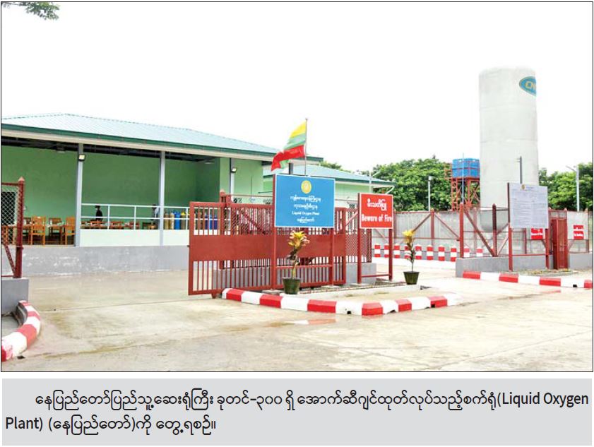 ထို့အတူ ကိုဗစ်-၁၉ ရောဂါဖြစ်ပွားသူတွေ အတွက် နောက်ဆက်တွဲလိုအပ်ချက်တစ်ခုဖြစ်တဲ့ အောက်ဆီဂျင်လိုအပ်ချက်ကို ဖြည့်ဆည်းပေးနိုင်ဖို့ တိုင်းဒေသကြီးနဲ့ ပြည်နယ်အသီးသီးက ပြည်သူ့ဆေးရုံတွေနဲ့ တပ်မတော်ဆေးရုံတွေမှာ အောက်ဆီ ဂျင်ထုတ်လုပ်တဲ့စက်ရုံတွေ တည် ဆောက်လျက်ရှိရာ ဩဂုတ်လအတွင်း ပြီးစီးသွားတဲ့ စက်ရုံများစွာ ထွက်ပေါ်လာခဲ့ပြီဖြစ် ပါတယ်။ ထို့အတူ တိုင်းဒေသကြီးနဲ့ ပြည်နယ်အသီးသီးက ပြည်သူတွေအားလုံး သတ်မှတ်အုပ်စု တွေအလိုက် ကာကွယ်ဆေးထိုးနှံ ပေးနိုင်ဖို့အတွက် ကာကွယ်ဆေးတွေကို မြေပြင် အအေး လမ်းကြောင်း မော်တော်ယာဉ်တွေနဲ့ ဖြန့်ဖြူး ပေးလျက်ရှိသလို တပ်မတော်လေယာဉ်တွေ၊ ရဟတ် ယာဉ်တွေနဲ့လည်း ဖြည့်ဆည်းဖြန့်ဖြူးပေးနေတာကို မြင်တွေ့ရပါတယ်။ ။
