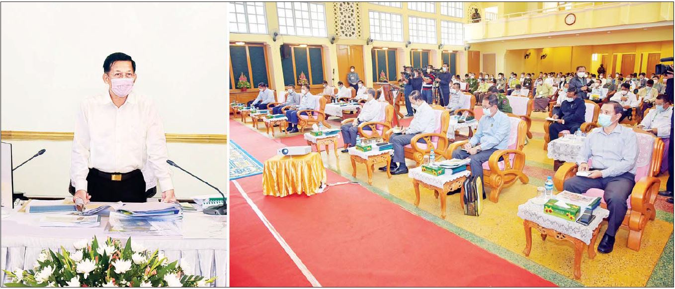 တိုင်းဒေသကြီးအတွင်း မြို့ပြဖွံ့ဖြိုးရေးစီမံကိန်းများ ရေးဆွဲဆောင်ရွက်နေမှုနှင့် ပတ်သက်၍ မြို့ပြတည်ဆောက်ရေးတွင် ရေဖူလုံစွာရရှိရေးနှင့် အသုံးချနိုင်ရေး၊ ပညာရည်သင်ကြားမှု စနစ်မြင့်မားရေး၊ ကျန်းမာရေးဆိုင်ရာနှင့် သယ်ယူ ပို့ဆောင်မှုစနစ် Public Transportation များ ကောင်းမွန်မှုရှိရန် ထည့်သွင်းစဉ်း စားရမည်ဖြစ်ကြောင်း၊ လမ်းများဖောက်လုပ်မှုမှအစ နိုင်ငံတကာမှ လက်ခံသည့် စံချိန်စံညွှန်းအတိုင်းဖြစ်ရန်နှင့် နောင်တစ်ချိန်တွင် လမ်းများတိုးချဲ့နိုင်ရေး ကြိုတင်တွက်ချက် ဖောက်လုပ်ရန်လိုသကဲ့သို့ လမ်းပခုံးများထည့်သွင်း တည်ဆောက်ရာတွင်လည်း လမ်းများ၏အဆင့်အလိုက် အဆင့်မီအောင် ထည့်သွင်း ဆောင်ရွက်ရန်လိုကြောင်း၊ သွားလာမှု ထွက်ပေါက်များကို စဉ်းစား ဆောင်ရွက်ထားရှိရန်လိုအပ်ပြီး လျှပ်စစ်ကိုအခြေခံသည့် လျှပ်စစ်ဘတ်စ်ကား လုပ်ငန်းများနှင့် လျှပ်စစ်မြို့ပတ်ရထားလမ်းများ၊ မြေအောက်ရထားလမ်းများ အထိ တွက်ချက်စဉ်းစားလုပ်ဆောင်ကြစေလိုကြောင်း၊ ထိုသို့သော စီမံချက်များ သည် အနာဂတ် plan များဖြစ်ပြီး မိမိတို့သည် ခေတ္တတာဝန်ယူထိန်းသိမ်းဆောင် ရွက်နေရသည့် အစိုးရဖြစ်သဖြင့် လက်ရှိ ပြည်သူလူထုရင်ဆိုင်နေရသည့် အခက်အခဲများနှင့် ကိုဗစ်-၁၉ ရောဂါကူးစက်ဖြစ်ပွားမှုများကို အဓိကဦးစားပေးအနေဖြင့် လုပ်ဆောင်ကြရမည်ဖြစ်ကြောင်း၊ အနာဂတ်နိုင်ငံတော်ဖွံ့ဖြိုးတိုးတက်ရေး အတွက်လည်း ကောင်းမွန်သည့်ရေရှည်စီမံကိန်းများကို တတ်စွမ်းသရွေ့ ရေးဆွဲ ချမှတ်ဆောင်ရွက်ရန် လိုကြောင်း။