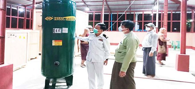 ကိုဗစ်-၁၉ ရောဂါဓာတ်ခွဲအတည်ပြု ပိုးတွေ့လူနာများနှင့် သီးသန့်စောင့် ကြည့်ရမည့်သူများကို ကုသရေး လုပ်ငန်းများ ဆောင်ရွက်ရာတွင် အောက်ဆီဂျင် လိုအပ်ချက်များကို တစ်ဖက်တစ် လမ်းမှ အထောက်အကူပြုစေရန်အတွက် ကျန်းမာရေး ဝန်ကြီးဌာနမှ Oxygen Plant များကို တိုးမြှင့်တပ်ဆင် လည်ပတ်လျက်ရှိပြီး တပ်မတော်အနေဖြင့်လည်း တိုင်းစစ်ဌာနချုပ် နယ်မြေ အသီးသီးတွင် Oxygen Plant များကို တပ်ဆင်ထုတ်လုပ်ပေးလျက်ရှိရာ စက်တင်ဘာ ၂၁ ရက်ညနေပိုင်းတွင် ဧရာဝတီတိုင်း ဒေသကြီး၊ ငပုတောမြို့၊ မြောက်ပိုင်းရပ်ကွက်၌ အောက်ဆီဂျင် ထုတ်လုပ်သည့်စက်ရောက်ရှိ တပ်ဆင်နေမှုနှင့် ကျုံပျော်မြို့၌ အောက်ဆီဂျင် ထုတ်လုပ် သည့်စက် စမ်းသပ်လည်ပတ်နေမှု အခြေအနေများအား သက်ဆိုင်ရာ မြို့နယ်စီမံ အုပ်ချုပ်ရေးအဖွဲ့ဉက္ကဋ္ဌများနှင့် တာဝန်ရှိသူများက သွားရောက်ကြည့်ရှုကြပြီး လိုအပ် သည်များ ညှိနှိုင်းဆောင်ရွက်ပေးခဲ့ကြကြောင်း သတင်းရရှိသည်။