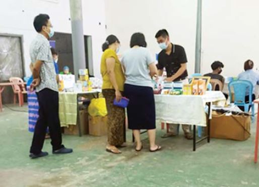 ကိုဗစ်-၁၉ ရောဂါ တတိယလှိုင်းဖြစ်ပွားနေသည့်ကာလအတွင်း ရန်ကုန်တိုင်း ဒေသကြီးအတွင်းရှိ ပြည်သူများ၏ ဆေးဝါးလိုအပ်ချက်အား ဖြည့်ဆည်းပေးနိုင်ရေး၊ ဆေးဝါးများလွယ်လင့် တကူဝယ်ယူနိုင်ရေး အရည်အသွေးနှင့်ဈေးနှုန်းမှန်ကန်စွာရရှိစေ ရေးအတွက် ရန်ကုန်တိုင်းဒေသကြီး အစိုးရအဖွဲ့၏ ညွှန်ကြားချက်အရ မြန်မာနိုင်ငံ ဆေးနှင့် ဆေးပစ္စည်းလုပ်ငန်းရှင်များအသင်း၏စီစဉ်မှုဖြင့် ဒုတိယနေရာအဖြစ် ပန်းဘဲတန်းမြို့နယ်၊ ကုန်သည်လမ်းနှင့် ဗိုလ်ဆွန်ပက်လမ်းထောင့်ရှိ မြန်မာ အပြည်ပြည်ဆိုင်ရာ ကုန်သွယ်မှုဗဟိုဌာန အဆောက်အအုံ၌ အိမ်သုံးဆေးဝါးများ လက်လီ လက်ကား ဖြန့်ဖြူး ရောင်းချခြင်းအစီအစဉ်ကို ယနေ့တွင် ဆက်လက်ဆောင်ရွက်ခဲ့ရာ ဆေးနှင့် ဆေး ပစ္စည်း ဖြန့်ဖြူးရောင်းချသောကုမ္ပဏီ ၁၁ ခုမှ ငွေကျပ် ၁ သိန်းကျော်တန်ဖိုးရှိ အိမ်သုံး ဆေးဝါး ၁၅၆ မျိုးအား ရောင်းချပေးခဲ့သည်။