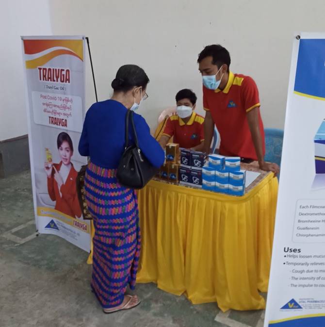 ကိုဗစ်-၁၉ ရောဂါ တတိယလှိုင်း ဖြစ်ပွားနေသည့် ကာလအတွင်း ရန်ကုန်တိုင်းဒေသကြီးအတွင်းရှိ ပြည်သူများ၏ ဆေးဝါးလိုအပ်ချက်အား ဖြည့်ဆည်းပေးနိုင်ရေး၊ ဆေးဝါးများ လွယ်လင့်တကူ ဝယ်ယူနိုင်ရေး အရည်အသွေးနှင့် ဈေးနှုန်းမှန်ကန်စွာ ရရှိစေရေးအတွက် ရန်ကုန် တိုင်းဒေသကြီးအစိုးရအဖွဲ့၏ ညွှန်ကြားချက်အရ မြန်မာနိုင်ငံဆေးနှင့် ဆေးပစ္စည်း လုပ်ငန်းရှင်များအသင်း၏ စီစဉ်မှုဖြင့် ဒုတိယနေရာအဖြစ် ပန်းဘဲတန်းမြို့နယ်၊ ကုန်သည်လမ်းနှင့် ဗိုလ်ဆွန်ပက်လမ်းထောင့်ရှိ မြန်မာအပြည်ပြည်ဆိုင်ရာ ကုန်သွယ်မှုဗဟိုဌာန အဆောက်အအုံ၌ အိမ်သုံးဆေးဝါးများ လက်လီလက်ကား ဖြန့်ဖြူးရောင်းချခြင်း အစီအစဉ်ကို ယနေ့တွင် ဆက်လက်ဆောင်ရွက်ခဲ့ရာ ဆေးနှင့် ဆေးပစ္စည်း ဖြန့်ဖြူးရောင်းချသောကုမ္ပဏီ ၁၀ ခုမှ အိမ်သုံးဆေးဝါး ၁၁၆ မျိုးအား ရောင်းချ ပေးခဲ့သည်။