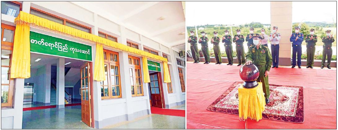 ရှမ်းပြည်နယ်တောင်ပိုင်း၊ အောင်ပန်းမြို့ရှိ တပ်မတော်ဆေးရုံ ဓာတ်ရောင်ခြည် ကုသဆောင်နှင့် ကင်ဆာရောဂါခွဲစိတ်ကုသဆောင် ဖွင့်လှစ်ပွဲအခမ်းအနားအား ယနေ့မွန်းလွဲပိုင်းတွင် ကျင်းပပြုလုပ်ရာ နိုင်ငံတော်စီမံအုပ်ချုပ်ရေးကောင်စီ ဥက္ကဋ္ဌ၊ တပ်မတော်ကာကွယ်ရေးဦးစီးချုပ် ဗိုလ်ချုပ်မှူးကြီး မင်းအောင်လှိုင် တက်ရောက် ဖွင့်လှစ်သည်။