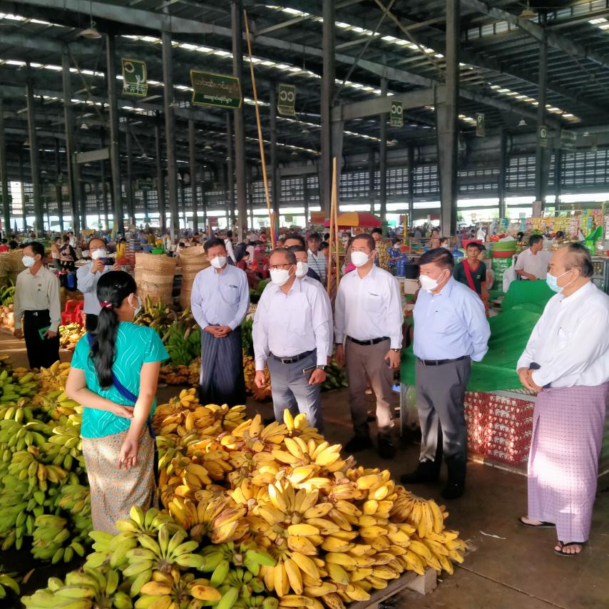 ယင်းနောက် ဈေးအုပ်ချုပ်ရေးရုံးများနှင့် ဈေးရုံဆိုင်ခန်းများသို ရောက်ရှိစစ်ဆေးစဉ် ပြည်ထောင်စု ဝန်ကြီးက စိုက်ပျိုးထုတ်လုပ်သူများအတွက် လက်က္ကားစျေးများ၏ နေ့စဉ် စျေးကွက် သတင်း အချက်အလက် Market Information များ အချိန်နှင့်တစ်ပြေးညီ တိကျမှန်ကန်စွာ ရရှိနိုင်မှသာ သီးနှံအမျိုးအစားနှင့် ထုတ်လုပ်ရမည့် ပမာဏကို ချိန်ဆ ဆောင်ရွက်နိုင် ကြမည်ဖြစ်ကြောင်း၊ သိုမှသာ ဈေးကွက်လိုအပ်ချက်ကို အပြည့်အဝဖြည့်ဆည်းပေးနိုင်မည် ဖြစ်သကဲ့သို အခြားတစ်ဘက် တွင်လည်း လေလွင့်ဆုံးရှုးမှုမရှိ ထုတ်လုပ်နိုင်မည်ဖြစ်၍ စိုက်ပျိုး ထုတ်လုပ်သူ၊ ပြုပြင်ထုပ်ပိုး သိုလှောင် ရောင်းချသူများ နှင့် စားသုံးသူများအားလုံး အတွက် ပိုမိုအကျိုးရှိနိုင် ကြမည်ဖြစ်ကြောင်း ဆွေးနွေးပြောကြားခဲ့ကြောင်း သိရသည်။