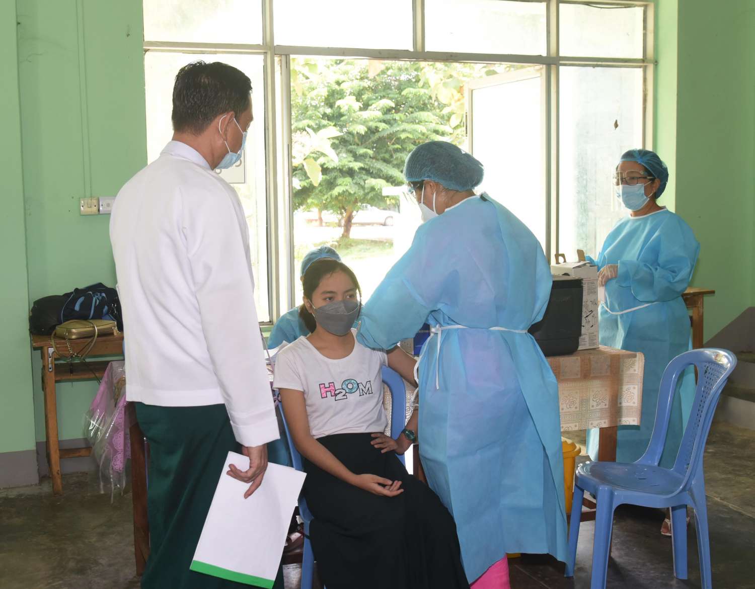 ကာကွယ်ဆေးထိုးနှံပြီးသည့် ကျောင်းသား၊ ကျောင်းသူများကိုလည်း ဆေးကြောင့် နောက်ဆက် တွဲလက္ခဏာများ ဖြစ်ပေါ်မှု ရှိ၊ မရှိ စောင့်ကြည့်နိုင်ရန် သီးသန့်အခန်းများတွင်ထားရှိပြီး နာရီဝက်စောင့်ကြည့်စေကာ ကျန်းမာရေးချို့ယွင်းမှု တစ်စုံတစ်ရာဖြစ်ပေါ် လာပါကအချိန်နှင့် တစ်ပြေးညီ ကျန်းမာရေးစောင့်ရှောက်မှု အပြည့်အဝပေးနိုင်ရန်လည်း ဆောင်ရွက်ထား သည်ကို တွေ့ရှိရသည်။