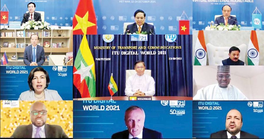 ပြည်ထောင်စုဝန်ကြီး ဗိုလ်ချုပ်ကြီး တင်အောင်စန်း ITU Digital World 2021 သို့ပါဝင်တက်ရောက် မြို့ပြသာမက ကျေးလက်ပါ မကျန်အိုင်စီတီနည်းပညာများ ကျွမ်းကျင်သက်သာစွာ သုံးစွဲရရှိနိုင်ရေးဆွေးနွေး
