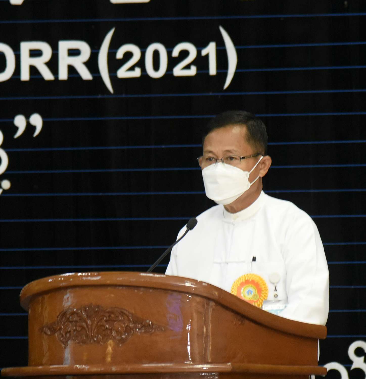 မိမိတို့နိုင်ငံအနေဖြင့် လက်ရှိကြုံတွေ့နေရသည့် ကိုဗစ်-၁၉ ရောဂါကဲ့သို့ ကပ်ရောဂါဘေးများ၊ သဘာဝဘေးများ၊ လူသားများ၏ လုပ်ဆောင်မှုကြောင့် ဖြစ်ပေါ်လာရသည့် ဘေးအန္တရာယ်များ စသည့်ဘေးအမျိုးမျိုး၏ ထိခိုက်နိုင်မှုများကို လျှော့ချဆောင်ရွက်ကြရာတွင် ရရှိနိုင်မည့် ပြည်တွင်း၊ ပြည်ပ ကူညီထောက်ပံ့မှုများကို အကျိုးရှိထိရောက်စွာ အသုံးပြုဆောင်ရွက်နိုင်ရေးအတွက် တာဝန်ရှိဌာန၊ အဖွဲ့အစည်းများအနေဖြင့် အထူးအလေးဂရုပြုဆောင်ရွက်ကြရန်လိုကြောင်း၊ ဌာန၊ အဖွဲ့အစည်းအချင်းချင်း အပြန်အလှန် အချိတ်အဆက်မိမိ ပူးပေါင်းဆောင်ရွက်ကြရန် လိုအပ်ပြီး တိုင်းဒေသကြီး၊ ပြည်နယ်အစိုးရအဖွဲ့များအကြား အချင်းချင်းချိတ်ဆက်မှု၊ ပြည်ထောင်စုနှင့် တိုင်းဒေသကြီး၊ ပြည်နယ်အစိုးရအဖွဲ့များအကြား အပြန်အလှန် ချိတ်ဆက်မှုများ ခိုင်မာအားကောင်းမည်ဆိုပါက မိမိတို့ အကောင်အထည်ဖော် ဆောင်ရွက်နေသည့် ဘေးအန္တရာယ် စီမံခန့်ခွဲမှုလုပ်ငန်းယန္တရား စဉ်ဆက်မပြတ် လည်ပတ်နိုင်ပြီး မျှော်မှန်းထားသည့်အတိုင်း ရာသီဥတုပြောင်းလဲမှုနှင့် လိုက်လျောညီထွေရှိသော လူမှုစီးပွားဘဝ ဖွံ့ဖြိုးတိုးတက်မှုများနှင့်အတူ ဘေးအန္တရာယ်များမှ ကြံ့ကြံ့ခံနိုင်သော မြန်မာနိုင်ငံ ဖြစ်ထွန်းလာနိုင်မည်ဖြစ်သည့်အတွက် အတူပူးပေါင်း ပါဝင်ဆောင်ရွက်ကြရန် တိုက်တွန်းပါကြောင်း ပြောကြားသည်။