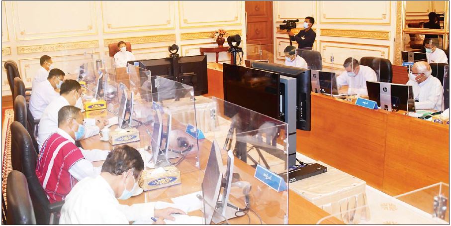 ရခိုင်ပြည်နယ်ရှိ ဒီရေတောများအား ထိန်းသိမ်းကာကွယ်စောင့်ရှောက်ရေး၊ လုံခြုံရေးနှင့်တရားဥပဒေ စိုးမိုးရေးအတွက် လူမှုကွန်ရက်စာမျက်နှာများကို ကြပ်မတ်ဆောင် ရွက်ရေး၊ တိုင်းဒေသကြီးနှင့် ပြည်နယ်များရှိ ကျောင်းသူကျောင်းသားများ ကိုဗစ်ကာကွယ် ဆေးထိုးနှံရေး၊ နိုင်ငံခြားဝင်ငွေရရှိမည့် ပြည်တွင်းထုတ်ကုန်များ ပြည်ပသို့ တင်ပို့ရောင်းချရာတွင် လွယ်ကူလျင်မြန်ချောမွေ့ရေး၊ ဆောက်လုပ်ရေးသုံး ပစ္စည်းအချို့အား ပြည်တွင်း၌ ထုတ်လုပ်နိုင်ရေး၊ ချင်းပြည်နယ်ရှိ တောင်တန်းဒေသ များ၌ မဟာဓာတ်အား လိုင်းနှင့် နေရောင်ခြည်စွမ်းအင်သုံး လျှပ်စစ်ထုတ်လုပ်ရေးတို့မှ တစ်ဆင့် လျှပ်စစ်ဓာတ် အား ရရှိအသုံးပြုနိုင်ရန် စီမံဆောင်ရွက်ပေးရေး၊ စပါး ရိတ်သိမ်း ချွေလှေ့ စက်များအတွက် လိုအပ်သည့် စက်သုံးဆီများအား သက်သာသောဈေးနှုန်းဖြင့် ဝယ်ယူရရှိနိုင်ရေး၊ ကိုယ်ပိုင် အုပ်ချုပ်ခွင့်ရ ဒေသများတွင် အစိုးရရုံးဌာနများ တိုးချဲ့ဖွင့်လှစ်ရေးတို့နှင့်စပ်လျဉ်း၍ ရှင်းလင်း ဆွေးနွေးတင်ပြကြသည်။