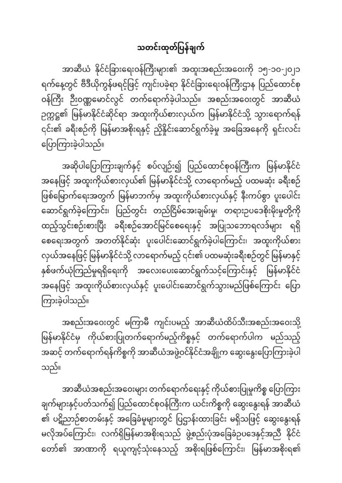 နိုင်ငံတော်အစိုးရ၏ ကြေညာချက်များ