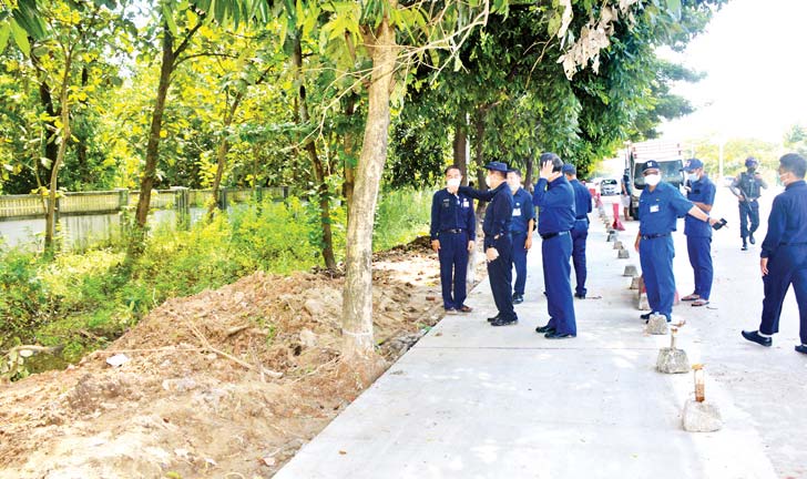 ယင်းနောက် မြို့တော်ဝန်နှင့်အဖွဲ့သည် လှိုင်သာယာ(အနောက်ပိုင်း)မြို့နယ်၊ ရန်ကုန်-ပုသိမ် လမ်းမကြီးဘေး၊ ရန်ကုန်အနောက်ပိုင်းနည်းပညာ တက္ကသိုလ်နှင့် အနော်ရထာစက်မှုဇုန်ရှေ့ မြေဧရိယာ ၁၂ ဒသမ ၂၅၈ ဧကတွင် လှိုင်သာယာ (အနောက်ပိုင်း) မြို့နယ်စုပေါင်းရုံးနှင့် ဝန်ထမ်းအိမ်ရာစီမံကိန်း တည်ဆောက်ရေးလုပ်ငန်းခွင်၌ အင်ဂျင်နီယာဌာန (ရေနှင့်သန့်ရှင်းမှု)က မြေအောက်ကန်တူးဖော်နေမှု၊ အင်ဂျင်နီယာဌာန(ရေစီးရေလာစီမံခန့်ခွဲမှု)က ရေစီး ရေလာ ကောင်းမွန်ရေး ဆောင်ရွက်နေမှုနှင့် ဧရာနဂါး ကုမ္ပဏီက အလျား ၈၁ ပေ၊ အနံ ၄၁ ပေရှိ အဆောင် လေးဆောင် ဆောက်လုပ်နေမှုတို့ကို လည်းကောင်း၊ လှိုင်သာယာ(အရှေ့ပိုင်းမြို့နယ်)နှင့် မရမ်းကုန်းမြို့ နယ် ဘုရင့်နောင်တံတား အမှတ်(၁) ချဉ်းကပ်လမ်း အရှည် ၁၁၅၈ ပေ၊ အကျယ် ၁၈ ပေ၊ ဒု ၁၁ လက်မ ကွန်ကရစ်ခင်းကျင်းပြီးစီးမှုနှင့် ချဉ်းကပ်လမ်း ဝဲ ယာအား အကျယ် ရှစ်ပေနှင့် အကျယ် ခြောက်ပေ။ လူသွားစင်္ကြံ ခင်းကျင်းနေမှုကို လည်းကောင်း၊ လှိုင်မြို့နယ် ဘုရင့်နောင် လမ်းမကြီး အနောက်ဘက် အခြမ်း အုတ်ကျင်းဂုန်နီစက်ရုံမှ သီရိမင်္ဂလာ ပိတောက်ချောင်းအထိ အရှည် ၂၆၇၅ ပေ၊ အကျယ် ရှစ်ပေ၊ ဒုခြောက်လက်မရှိ ကွန်ကရစ်လူသွားစင်္ကြံ စက်ဘီးလမ်း၊ ယာဉ်ရပ်နားရန်နေရာများနှင့် မြေယာ ရှုခင်းများ ဆောင်ရွက်ထားမှုကိုလည်းကောင်း၊ ဘုရင့် နောင်လမ်းမကြီးအရှေ့ဘက်အခြမ်း၊ ပိတောက် ချောင်းမှ ဘုရင့်နောင်လမ်းအတိုင်း ပါရမီလမ်းဆုံ၊ ၎င်းမှ ဗဟိုလမ်း ရထားလမ်းကူးအထိ အရှည်ပေ ၆၅၀၀ လမ်းချဲ့၍ အကျယ်ရှစ်ပေ၊ ဒုခြောက်လက်မရှိ ကွန်ကရစ်လူသွား စကြံစက်ဘီးလမ်း၊ ယာဉ်ရပ်နား ရန်နေရာများ ပြုလုပ်နေမှုကိုလည်းကောင်း ကြည့်ရှုစစ်ဆေးပြီး လိုအပ်သည်များ မှာကြားသည်။