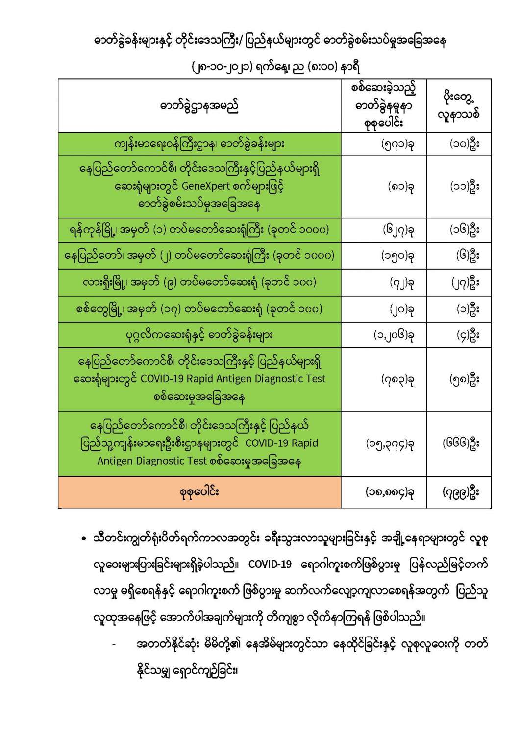 COVID-19 ရောဂါ စောင့်ကြပ်ကြည့်ရှုမှုနှင့်ပတ်သက်၍ သတင်းထုတ်ပြန်ခြင်း (၂၈-၁၀-၂၀၂၁) ရက်နေ့၊ ည (၈:၀၀)နာရီ 10/28/2021