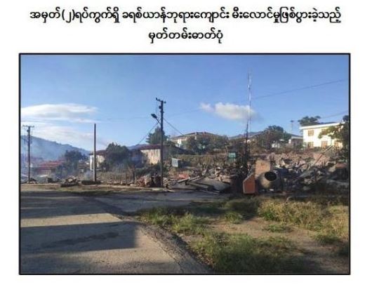လုံခြုံရေးတပ်ဖွဲ့ဝင်များအနေဖြင့် မီးငြိမ်းသတ်ရေးလုပ်ငန်းများကို ဆောင်ရွက်ရန် ပြင်ဆင် ခဲ့သော်လည်း အကြမ်းဖက်သောင်းကျန်းသူများ၏ မြို့အတွင်းရှိ နေအိမ်များ အတွင်း ခိုအောင်း၍ ပစ်ခတ်တိုက်ခိုက်မှုကြောင့် လိုအပ်သည့်လုံခြုံ ရေးလုပ်ငန်းများကို ဆောင်ရွက်၍ ယနေ့နံနက်ပိုင်းတွင် မြို့အတွင်း ဝင်ရောက်စိစစ်ခဲ့ရာ ရပ်ကွက် အတွင်းရှိ ဘုရားရှိခိုးကျောင်း ၂ ကျောင်း၊ လူနေအိမ် ၇၀ ခန့် မီးလောင် ပျက်စီးဆုံးရှုံး ခဲ့ကြောင်း သိရှိရသည်။